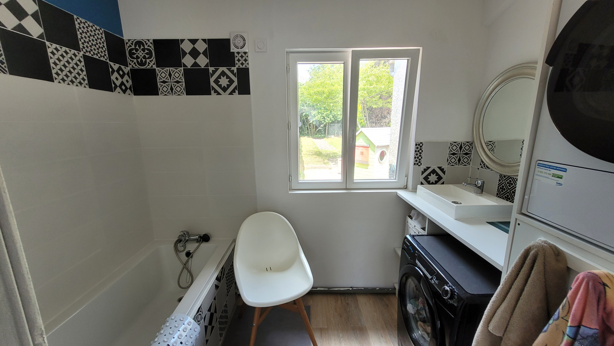 Cette maison rénovée proposait à l'origine 3 chambres lumineuses avec porte-fenêtre, placard. La maison a évolué au rythme de l'agrandissement de la famille qui y vit. Une quatrième chambre a été créé et peut devenir un espace de télétravail.