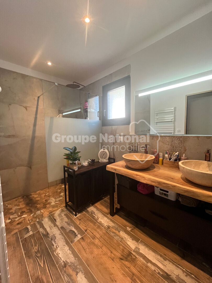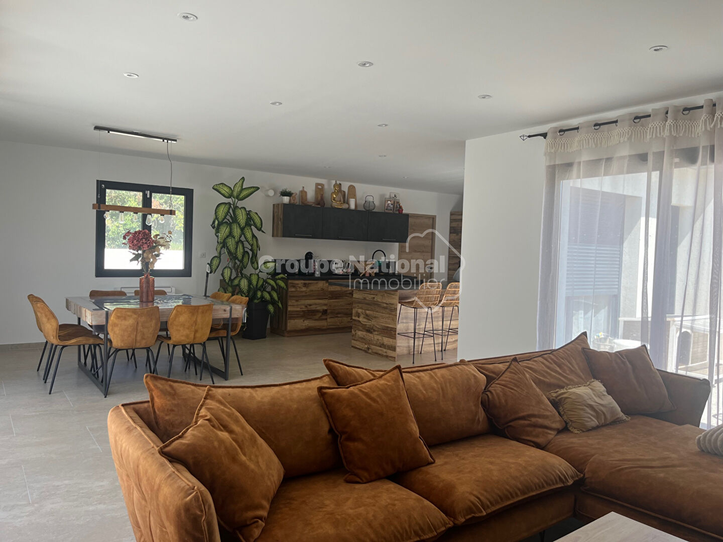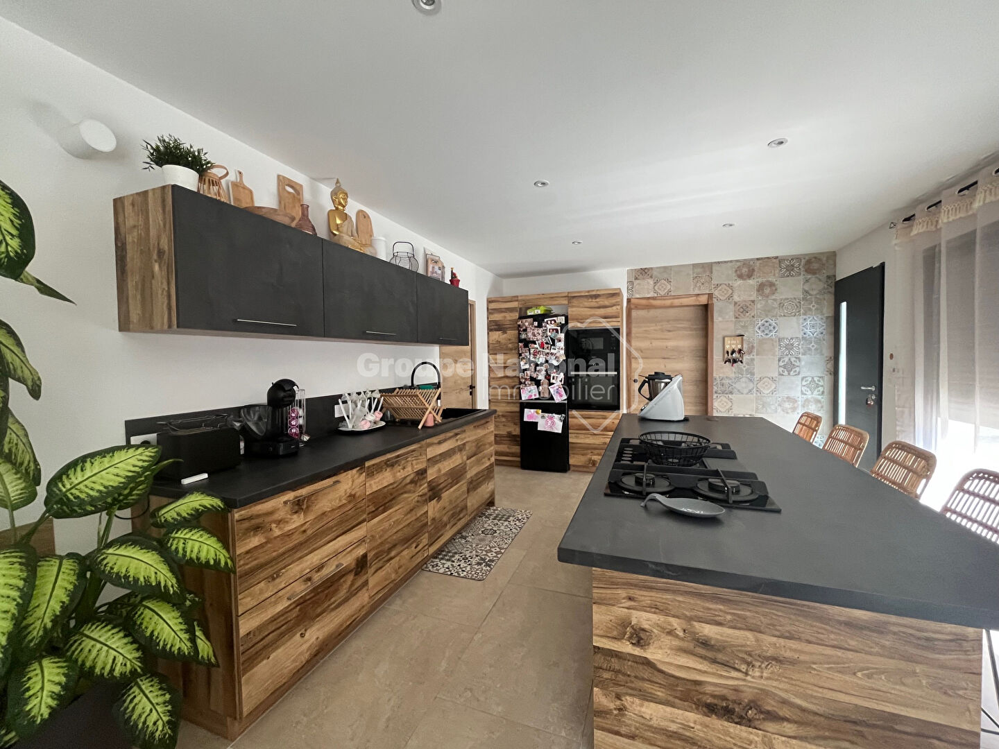 Vaste pièce de vie d'environ 60 m2, lumineuse et chaleureuse comprenant cuisine entièrement équipée ouverte sur séjour avec poêle, 3 chambres, salle d'eau avec douche à l'italienne, dressing, buanderie et garage.