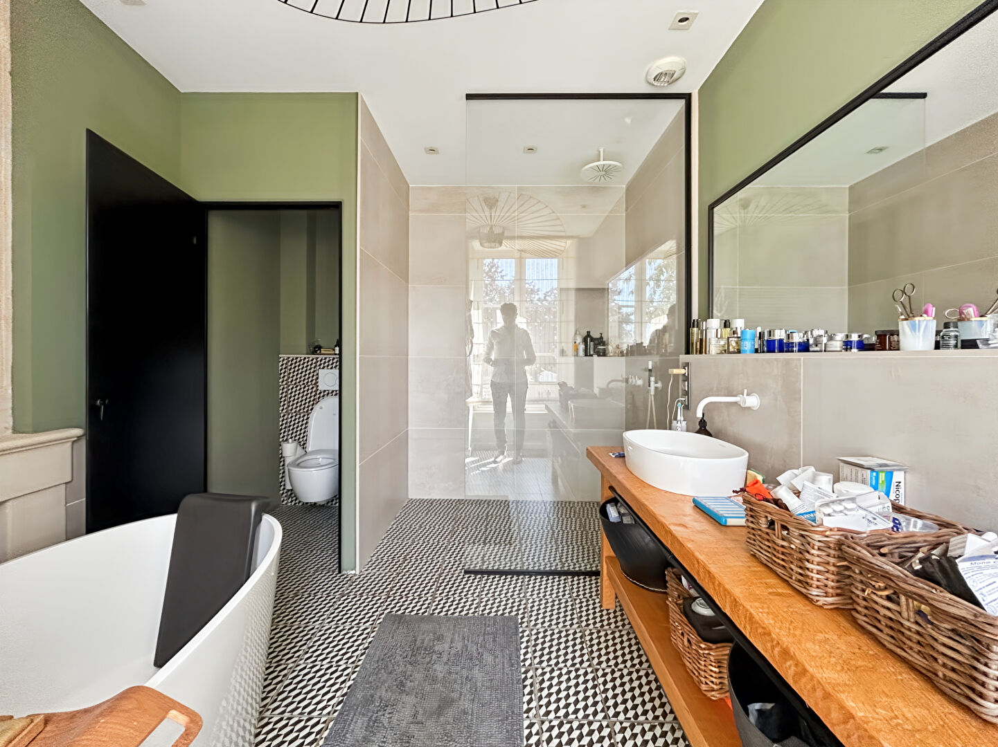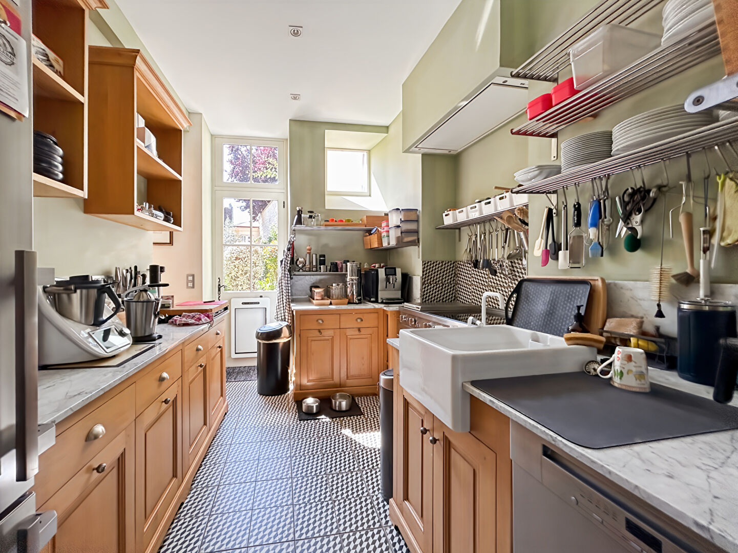 D'une surface habitable de 220 m², cette demeure conjugue avec élégance le charme de l'ancien (cheminées, volumes, matériaux nobles) et le confort moderne (ascenseur, chauffage pompe à chaleur + gaz, isolation performante DPE : B).