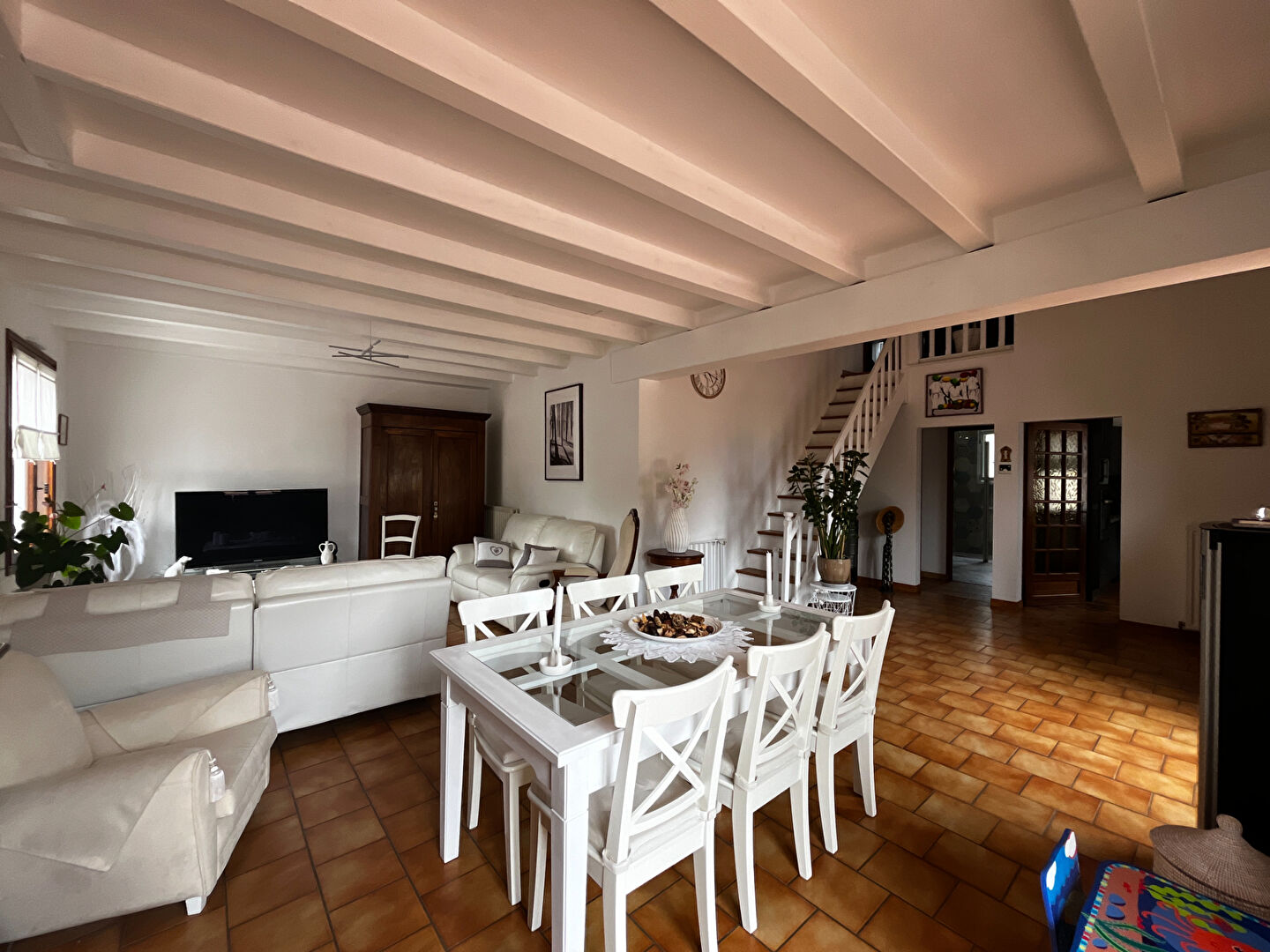 D'une surface de 120 m² environ, cette maison offre en rez-de-chaussée, une pièce de vie avec salon-séjour lumineux et cuisine aménagée et équipée. Sur ce même niveau, 2 chambres et une salle de bains, une arrière cuisine-chaufferie, et une grande cave.