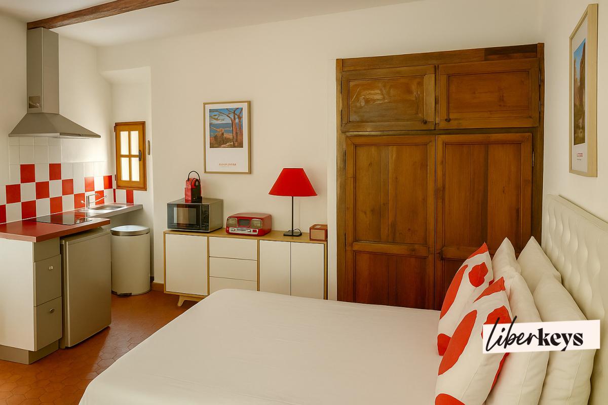 Derrière sa façade pleine d'authenticité, cette maison de village se déploie sur trois niveaux et a été entièrement repensée pour la location meublée de tourisme. Elle se compose aujourd'hui de trois studios indépendants de 17 m², un par étage, tous rénovés avec soin et décorés dans un esprit à la fois chaleureux et fonctionnel.