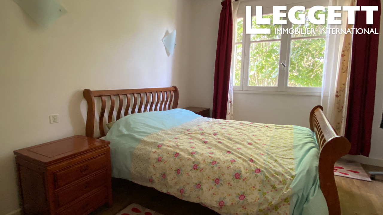 A13758 - Maison bâtie sur sous-sol -nouvelle toiture en 2013- comprenant garage et appartement/studio (1chambres) à finir. Au rez-de-habitation: entrée, couloir, salon avec poêle à bois, cuisine équipée, deux chambres, salle de bains avec lavabo et WC, WC séparé, rangement encastré. À l'étage une chambre et salle d'eau à finir. Jardin autour