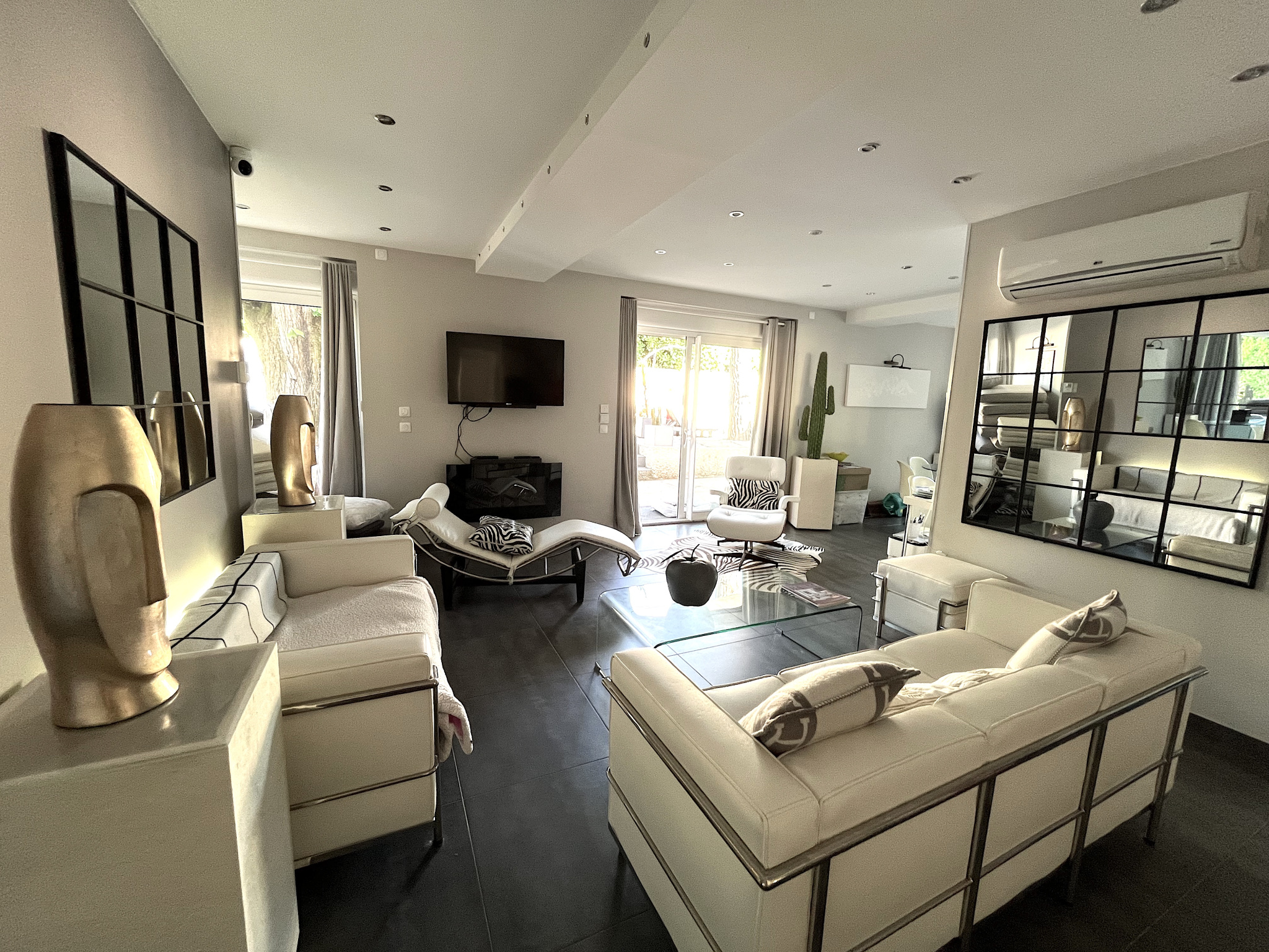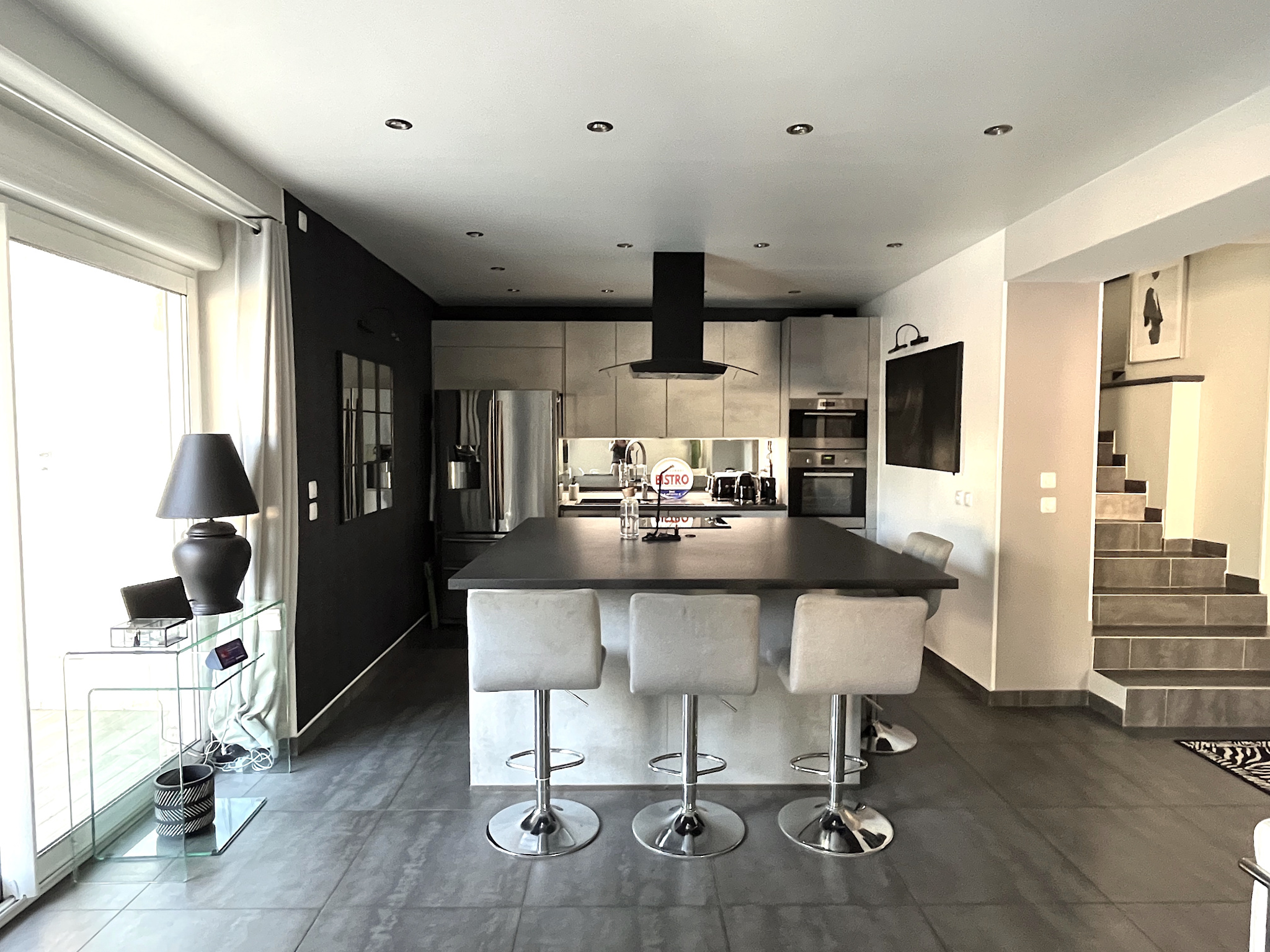 Coexclusivité - PIERREFEU immobilier vous propose à la vente, sur Champagne-au-Mont d'Or - limite Ecully, cette demeure familiale individuelle d'environ 210 m2 (250m2 surface utile), élevée sur trois niveaux et entièrement rénovée avec goût. Édifiée sur un terrain paysagé de 900 m2 exposé Sud-Est, elle conjugue modernité, confort et intimité. Dès l'entrée, une spacieuse pièce de vie baignée de lumière vous accueille, prolongée par une cuisine américaine ouverte sur l'extérieur. Les larges baies vitrées dévoilent une vaste terrasse aménagée, un jardin luxuriant et une piscine chauffée de 10x5m bordée de palmiers et de coins détente. Une suite parentale en rez-de-jardin, avec sa terrasse privative, sa salle d'eau avec douche à l'italienne et ses finitions soignées complètent ce niveau. L'étage est organisé comme un appartement indépendant avec séjour lumineux, cuisine équipée ouverte sur un large balcon filant avec vue, deux chambres, salle de bains et WC séparé. Le dernier niveau, pensé pour le bien-être et le télétravail, propose une chambre supplémentaire, un bureau, une salle de sport, une salle d'eau. Un dressing et de nombreux rangements sur mesure complètent ce niveau. L'accès à la maison se fait par un portail automatisé derrière lequel se trouve un carport pouvant accueillir 3 voitures. Bonne performance énergétique. Climatisation. DPE D. Visites et renseignements : Muriel Chauplannaz - Agent commercial indépendant de la SARL Pierrefeu Immobilier - Immatriculée au R.S.A.C de Lyon sous le Numéro 843 741 570.