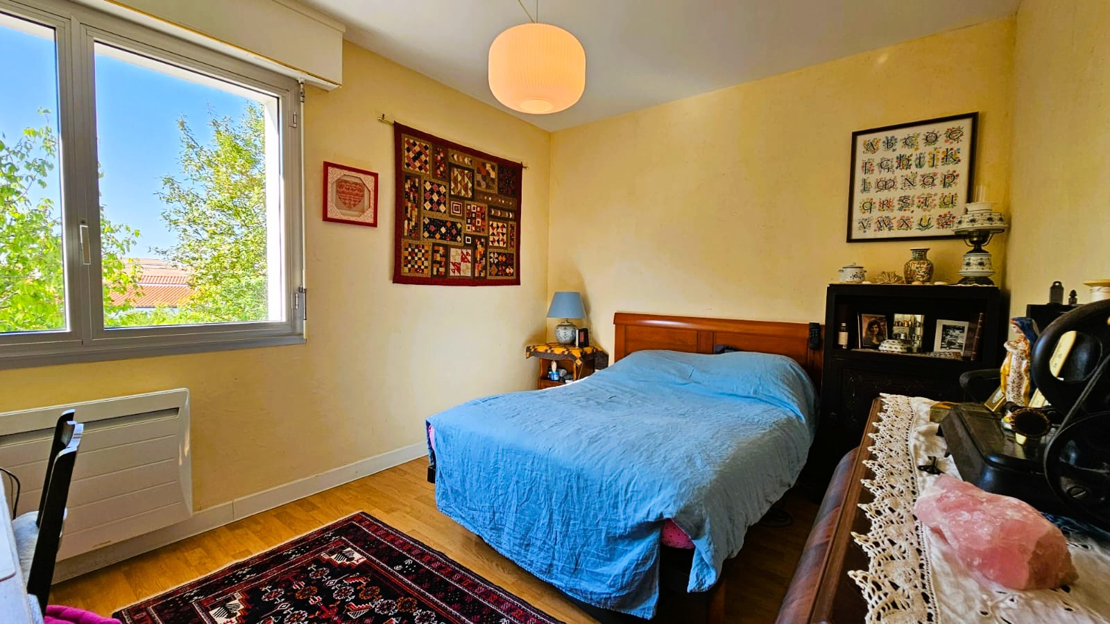 La partie nuit, idéalement séparée, se trouve en demi-niveau (7 marches) et propose un dégagement donnant accès aux 3 chambres à un dressing ainsi qu'à la salle de bains (baignoire et bidet) et les wc indépendants avec lave-mains.