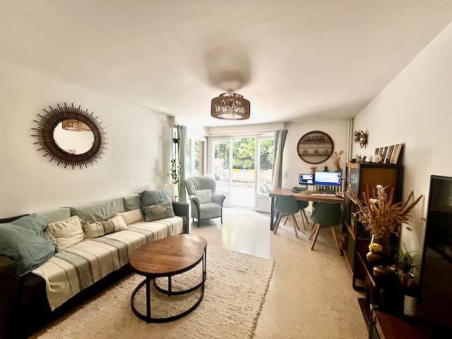 A 2 pas de la plage de Portissol, dans résidence calme, appartement T3 d'env.65m2 hab. en rez-de -jardin, comprenant : Une entrée, séjour de 19m2 donnant sur terrasse de 12m2 et jardinet, cuisine aménagée et équipée, 2 chambres avec placards (14 et 13m2), une salle de bains, wc. Cave, parking commun. Loué 1008?/mois charges comprises.