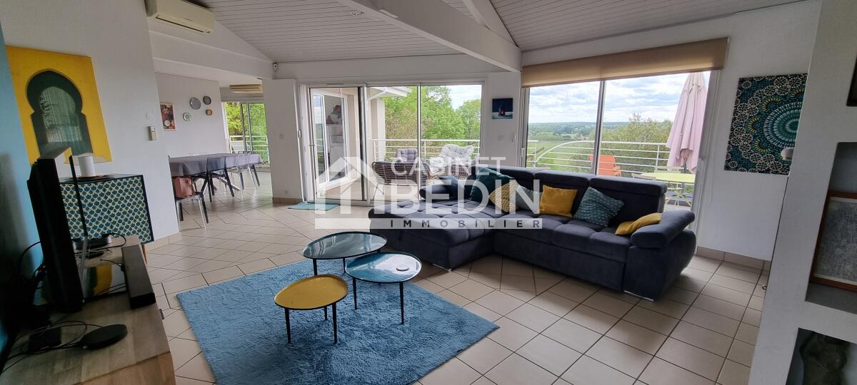 15 minutes de Lagon. Maison d?architecte avec vue panoramique sur la Garonne! Maison familiale avec piscine, beaux volumes & vue dégagée.