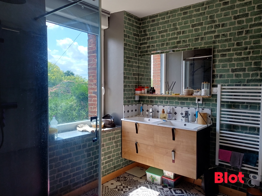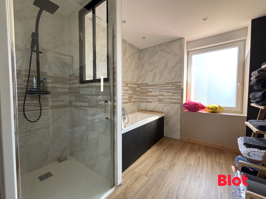 - Au 1er étage : 2 chambres, dont une suite parentale avec salle d'eau privative, ainsi qu'une salle de bains.