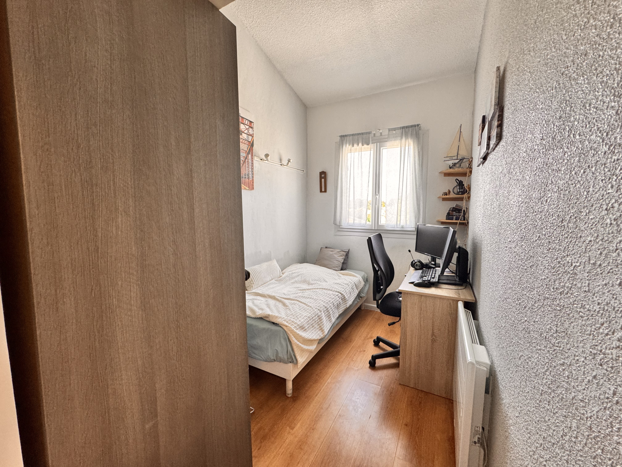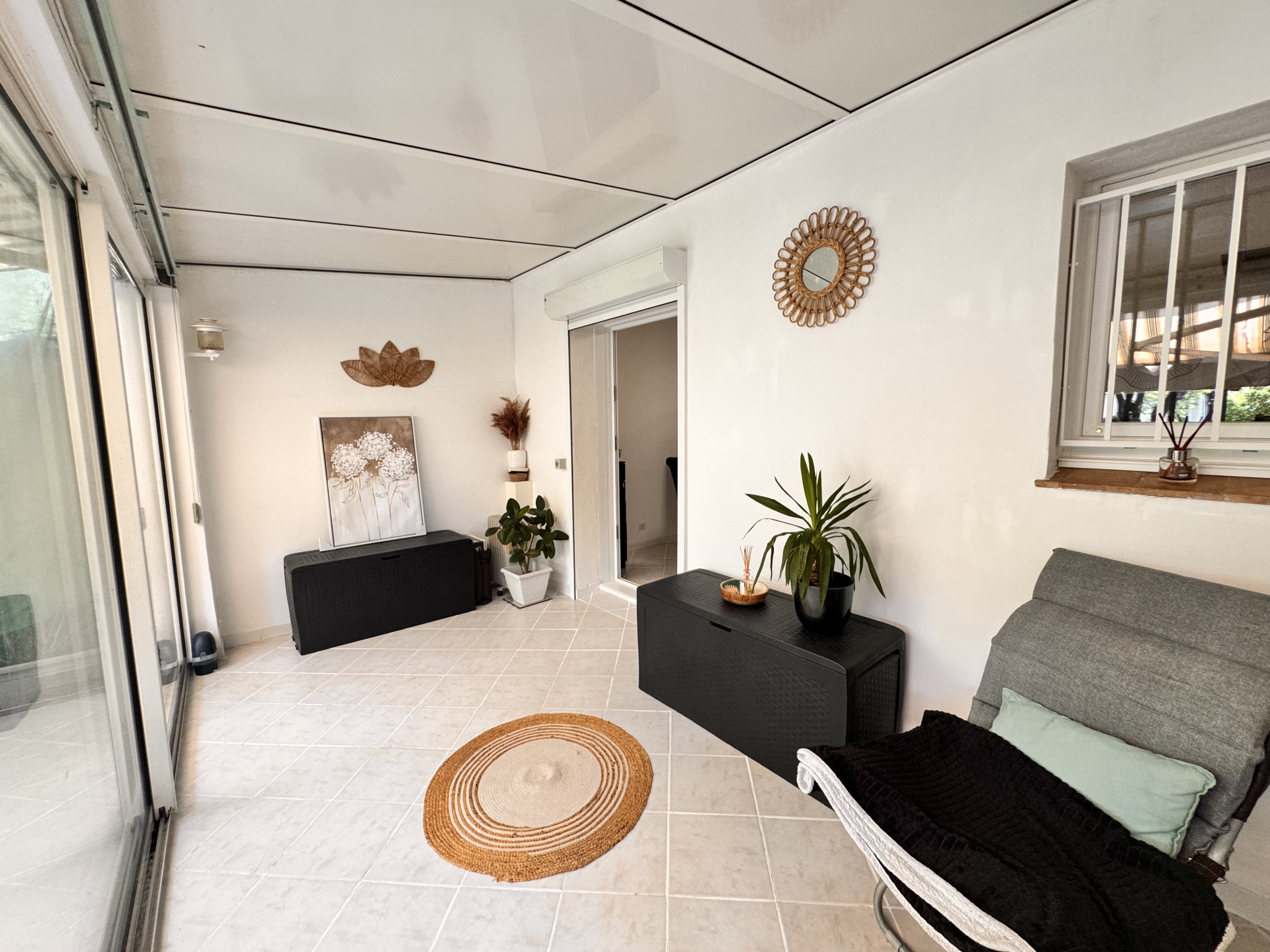 Entièrement rénovée et parfaitement entretenue, elle se compose au rez-de-chaussée d'une pièce de vie avec cuisine semi-ouverte, ouvrant sur une agréable véranda elle-même prolongée par un jardinet arboré, intime et sans vis-à-vis. À l'étage, deux chambres offrent un espace nuit fonctionnel, idéal pour une résidence secondaire ou un pied-à-terre au soleil.
