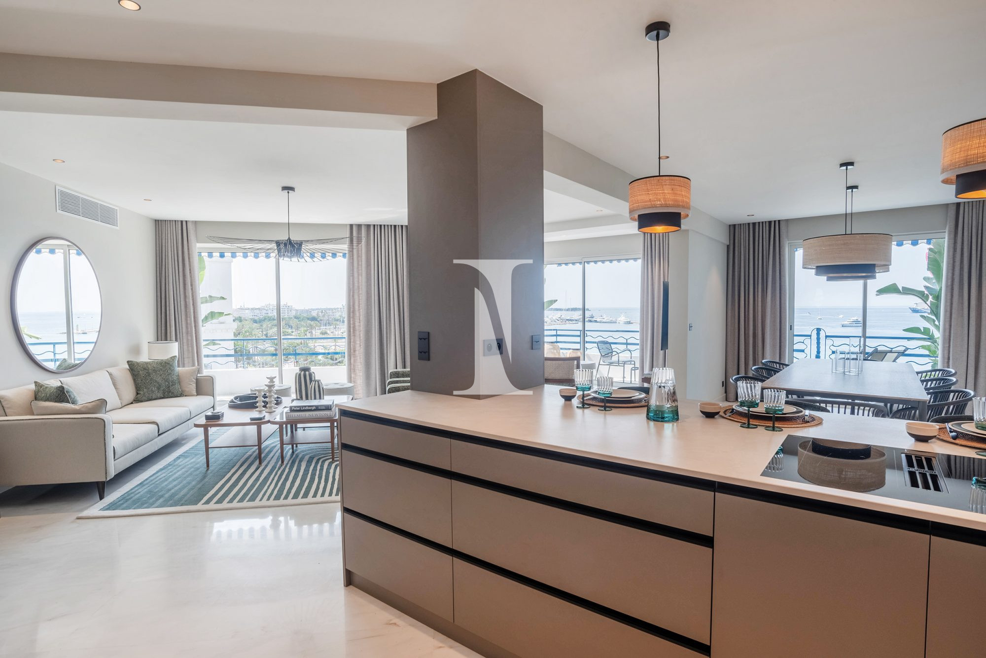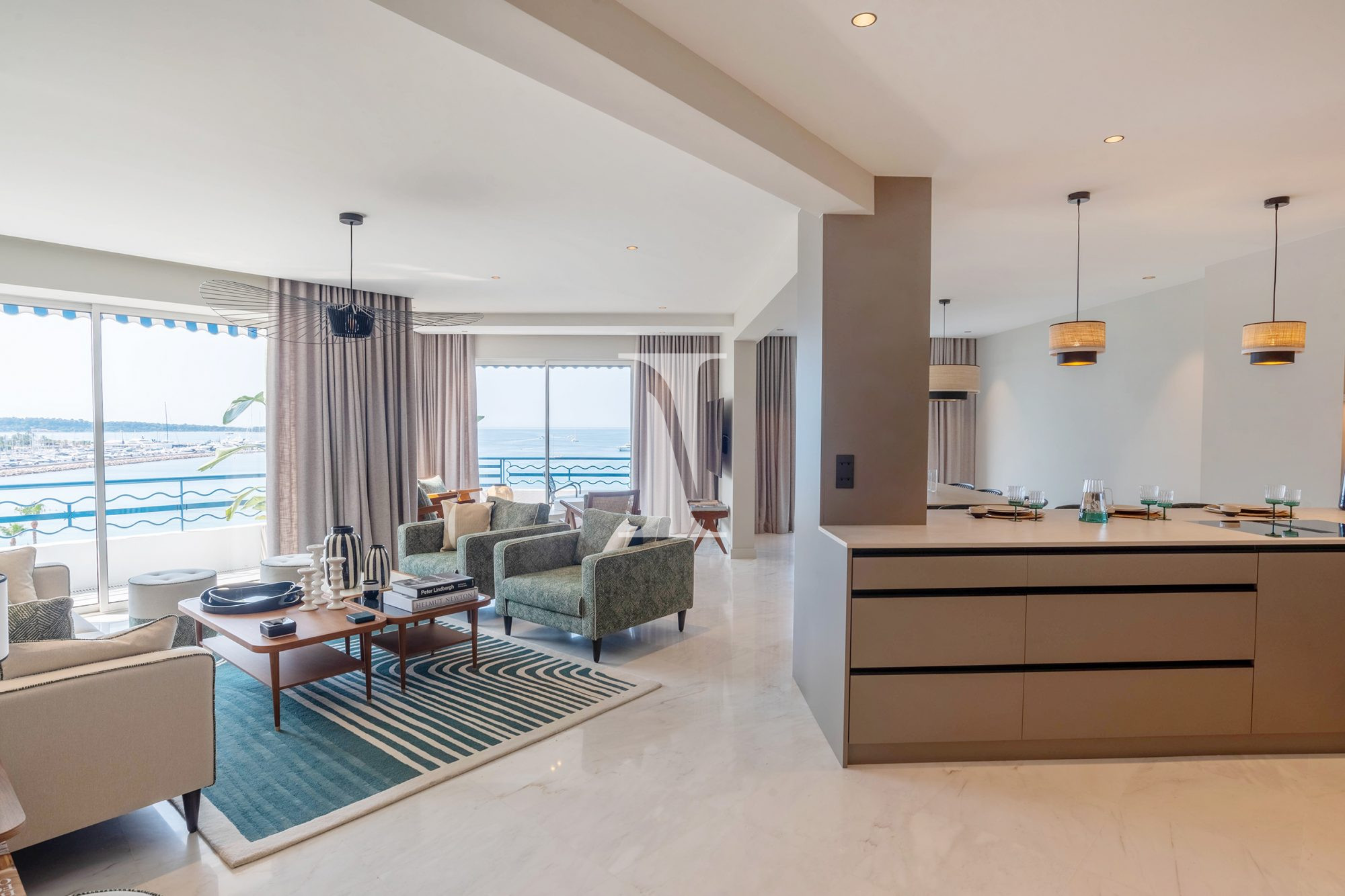 Croisette superbe vue mer pour cet appartement sud est aux prestations luxueuses au dernier étage composé d'une entrée avec wc indépendant un magnifique living d'une surface de 71.05 m2 avec cuisine us entièrement équipée et luxueuse