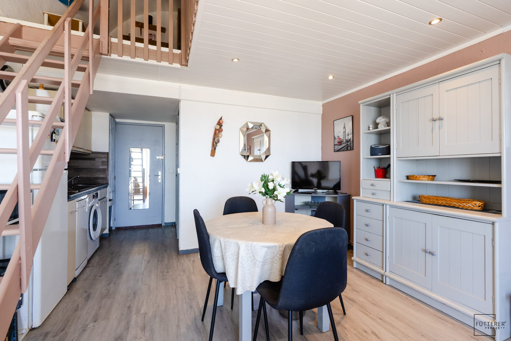 Fütterer Property vous présente à Gruissan - Grazel - EN EXCLUSIVITÉ : Dans une résidence sécurisée, un appartement 2 pièces + mezzanine de 48 m² (28 m² Loi Carrez) avec une vue exceptionnelle et dégagée sur la plage du Grazel et la mer.