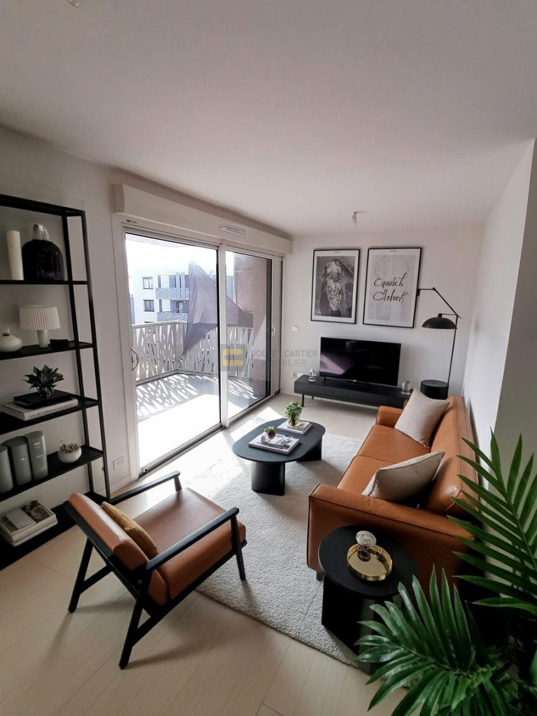 ANNEMASSE - Dans une copropriété de bon standing et récemment construite, appartement T2 de 41,76m² situé au 2ème étage sur 3, composé d'un hall d'entrée desservant une salle de bains avec WC, une chambre de 11,65m², une cuisine ouverte, un lumineux séjour donnant sur un balcon de 14,10m², agréable de part son espace mais aussi par sa superbe exposition Sud.