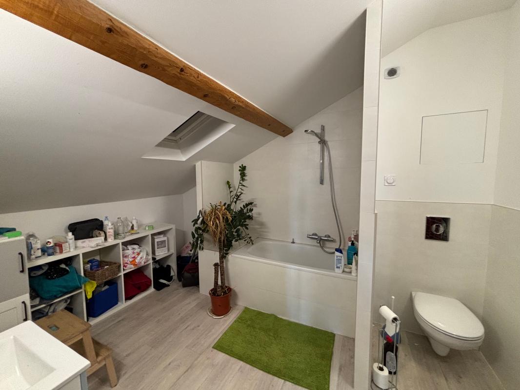 A l'étage on trouve, un grand dortoir pouvant être séparé en deux chambres, et une salle de bain avec w.c.