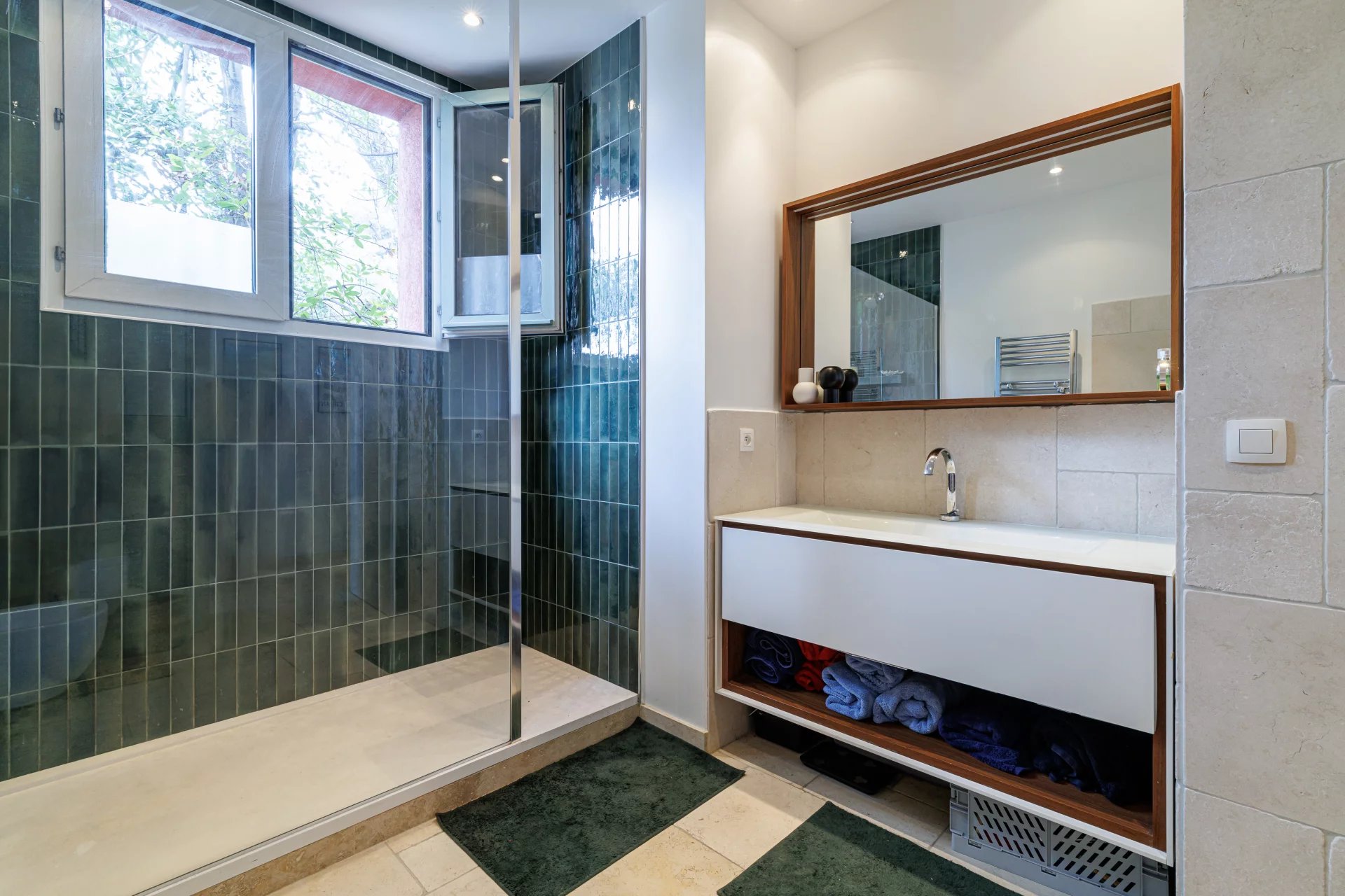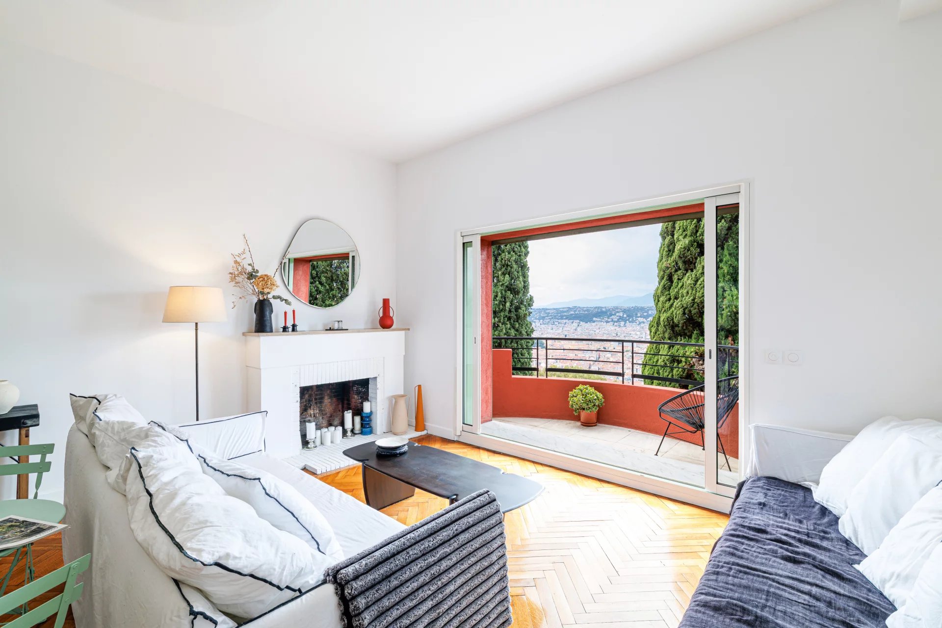 Le véritable atout de ce bien est sa vaste terrasse sur le toit de 70 m² à jouissance exclusive, accessible par un escalier extérieur. Un lieu unique pour profiter du soleil, du calme et d’un panorama exceptionnel sur la ville, le port, la mer et les collines boisées du Mont Boron.
