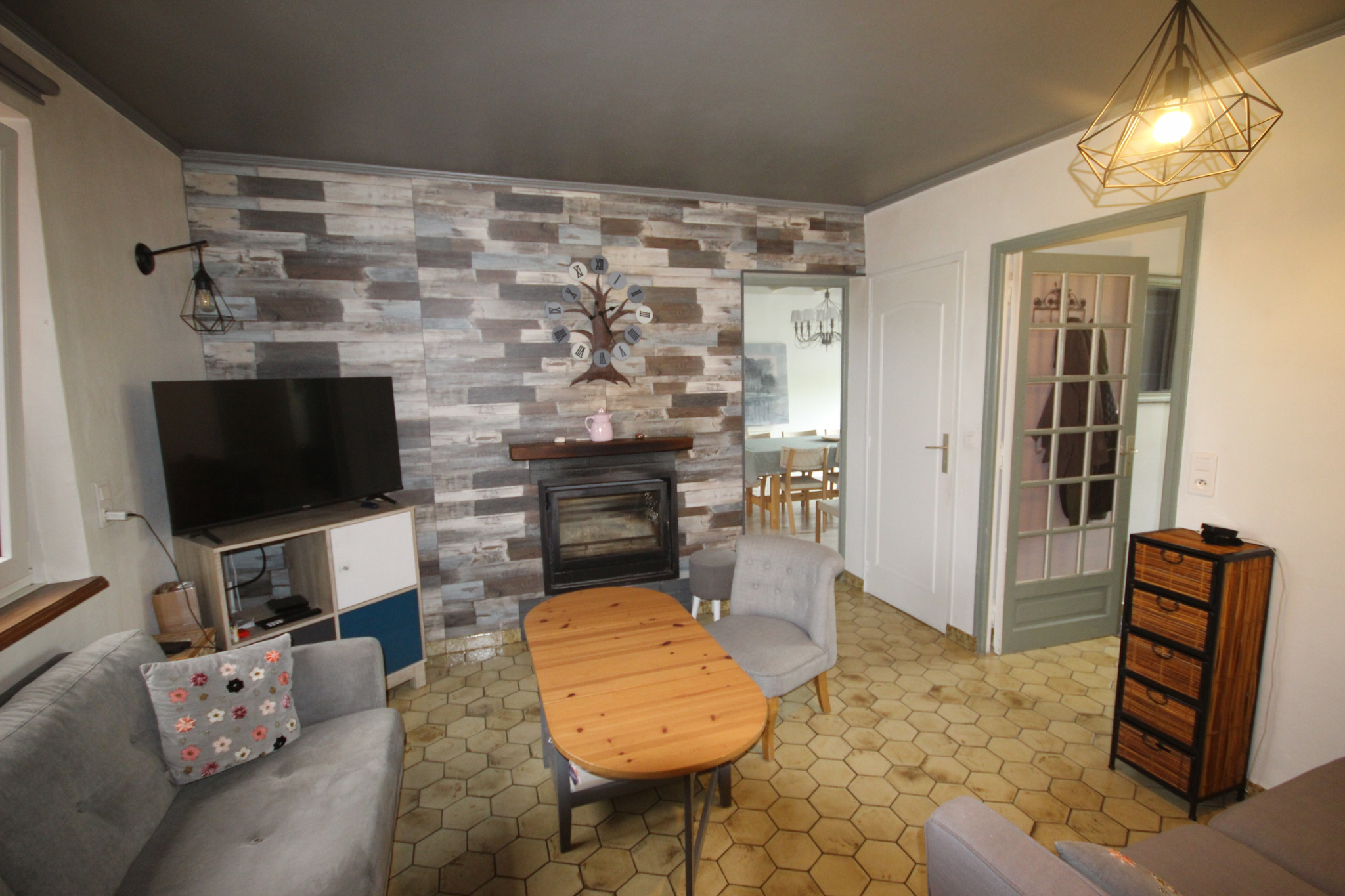 Le gîte comprend, sur un même niveau, un séjour avec cuisine américaine équipée, 2 chambres dont une avec salle de bains et wc,