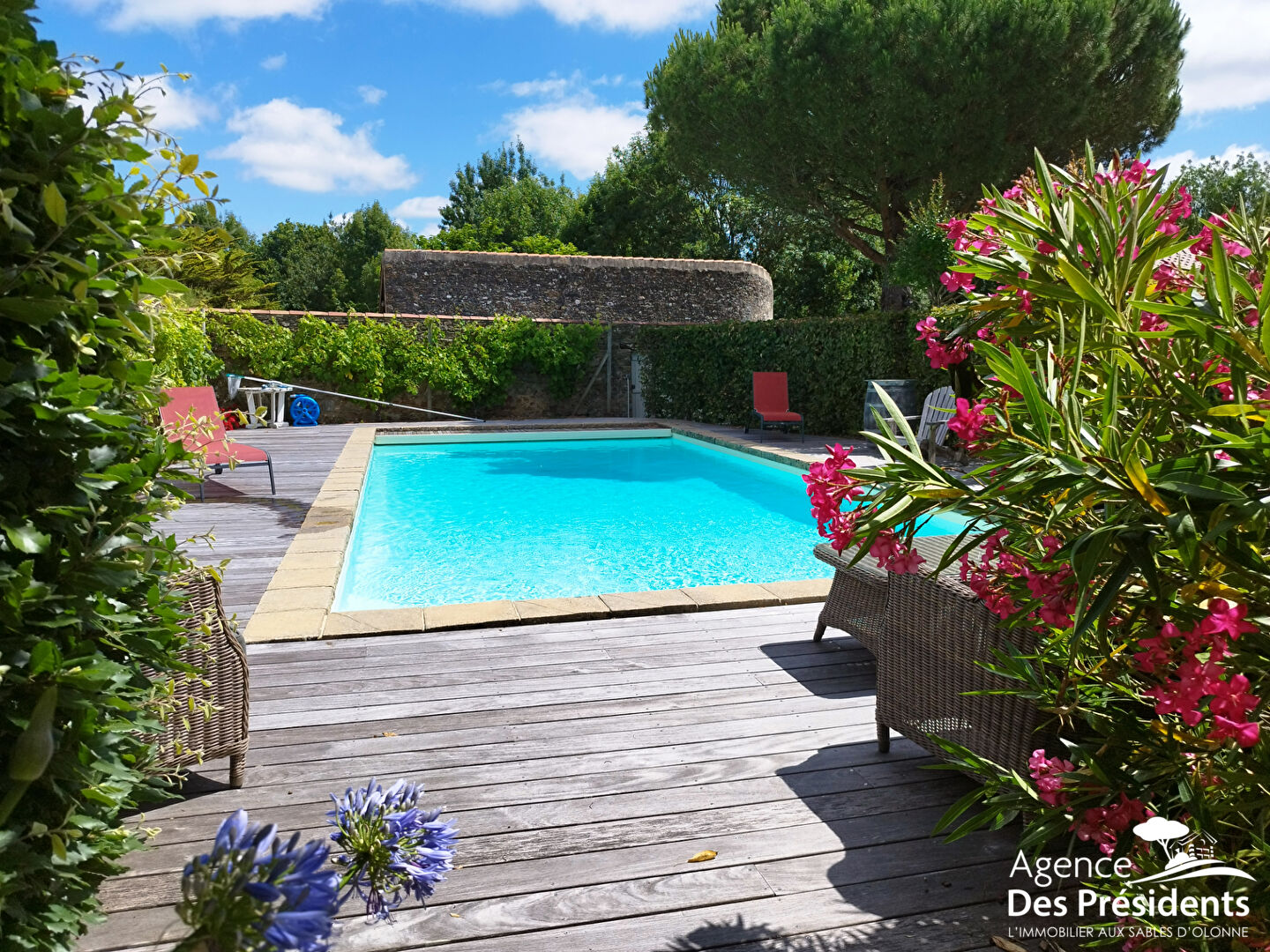 Situées au coeur historique de Talmont, à deux pas à pieds du Château et des commerces, magnifique bâtisse en pierres entièrement refaite à neuf de 156 m² habitables, et une seconde maison de 137 m² habitables pour accueillir les amis ou la famille vous séduiront. Cet ensemble immobilier dispose également d'un atelier idéal pour une activité artistique ou autre, d'ancien pressoir, d'un local technique, d'une remise. Vous bénéficierez d'une piscine chauffée 11X6 m avec volet électrique, tournée sur le joli jardin arboré et fleuri, sans vis à vis. Abri voitures. Le charme naturel de cette propriété vous ravira.