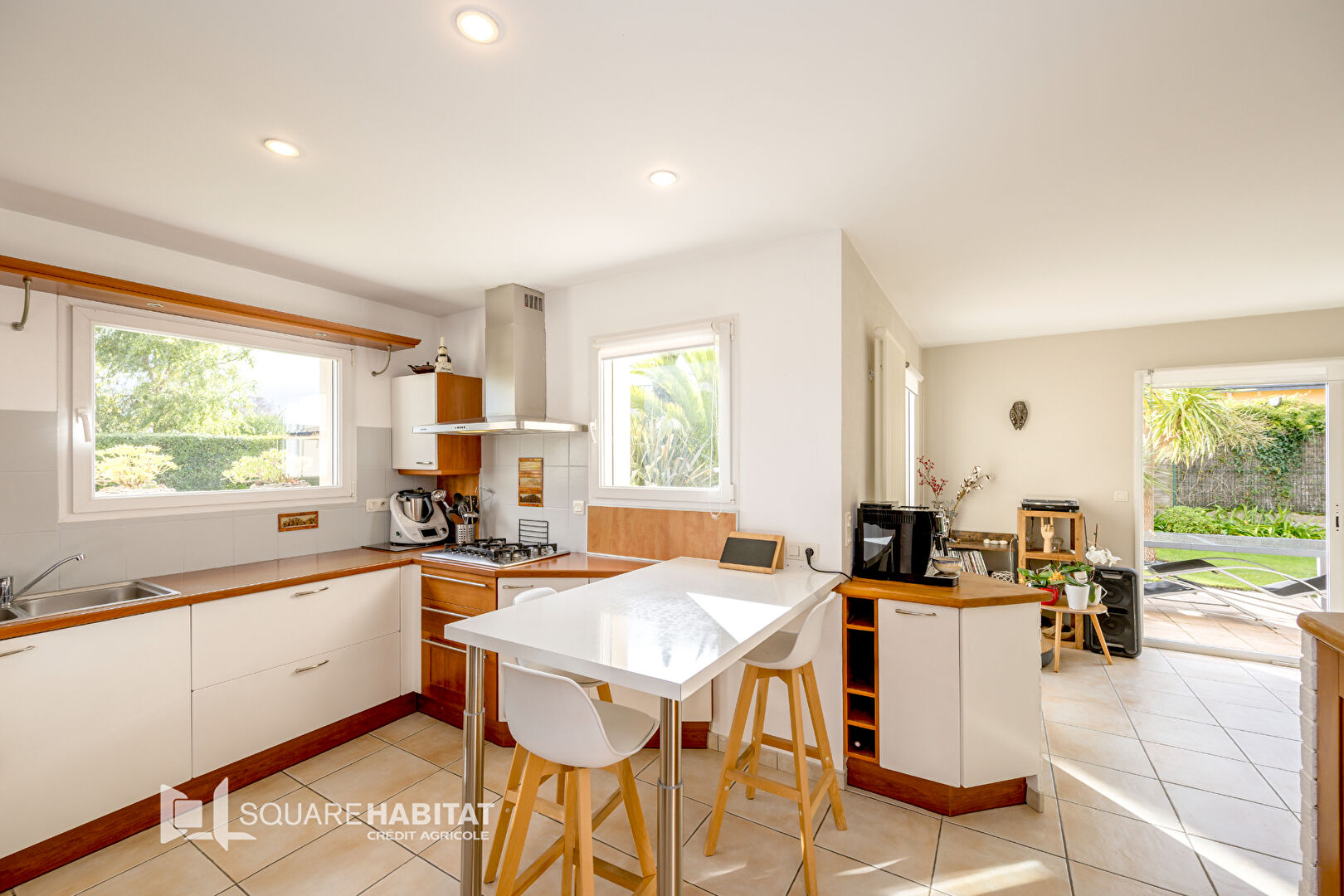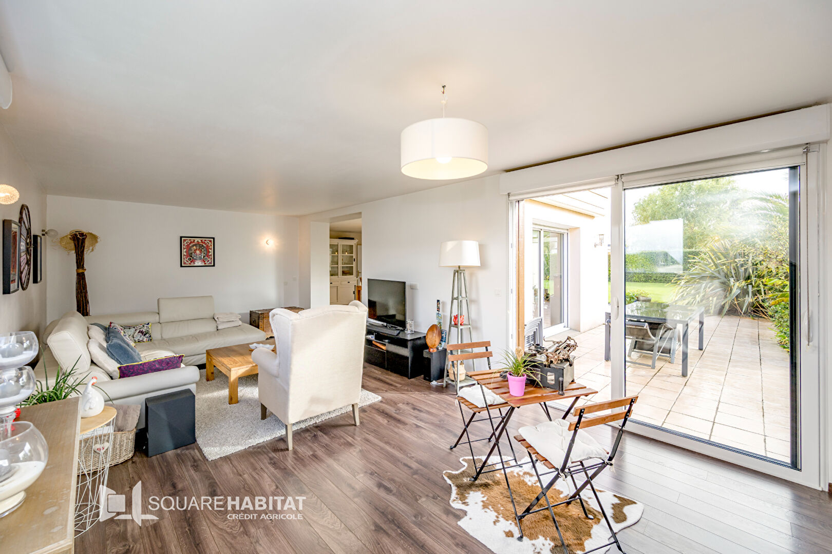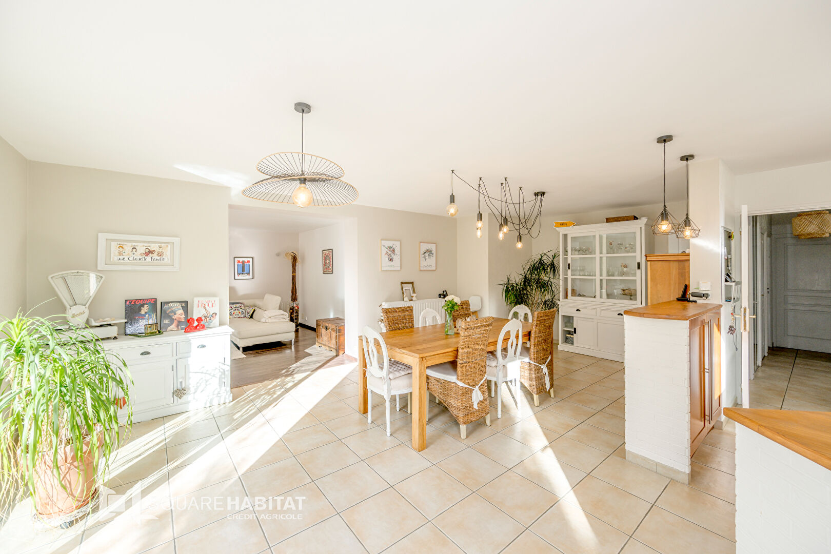 L'espace de vie de près de 70 m² baigné de lumière, offre un cadre chaleureux avec une cuisine aménagée et équipée ouverte sur la salle à manger et le salon.