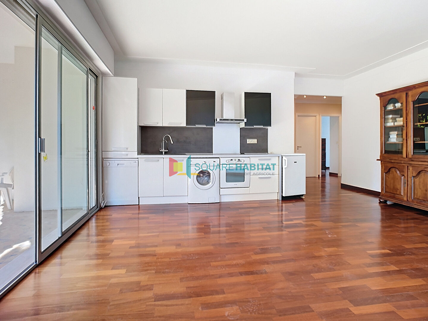 Dans une belle résidence, sécurisée et au calme. L'appartement 2P modifié en 3P se compose d'un séjour avec une cuisine ouverte, 2 chambres, une salle de bains avec WC et bidet, 1 WC indép.