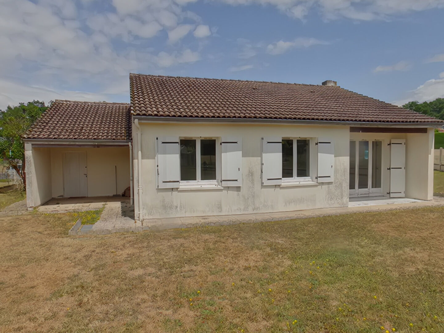 Un pavillon de plain pied en bon état comprenant un salon-séjour, une cuisine, trois chambres, sdb, WC et un garage atteanant de 25 m².