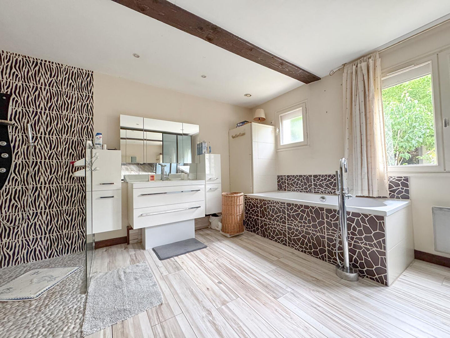À l'étage, vous trouverez une grande chambre avec point d'eau, offrant de beaux volumes, idéale comme chambre supplémentaire, bureau ou espace détente. L'ensemble est implanté sur un beau jardin bien exposé, parfait pour profiter des extérieurs en toute sérénité.