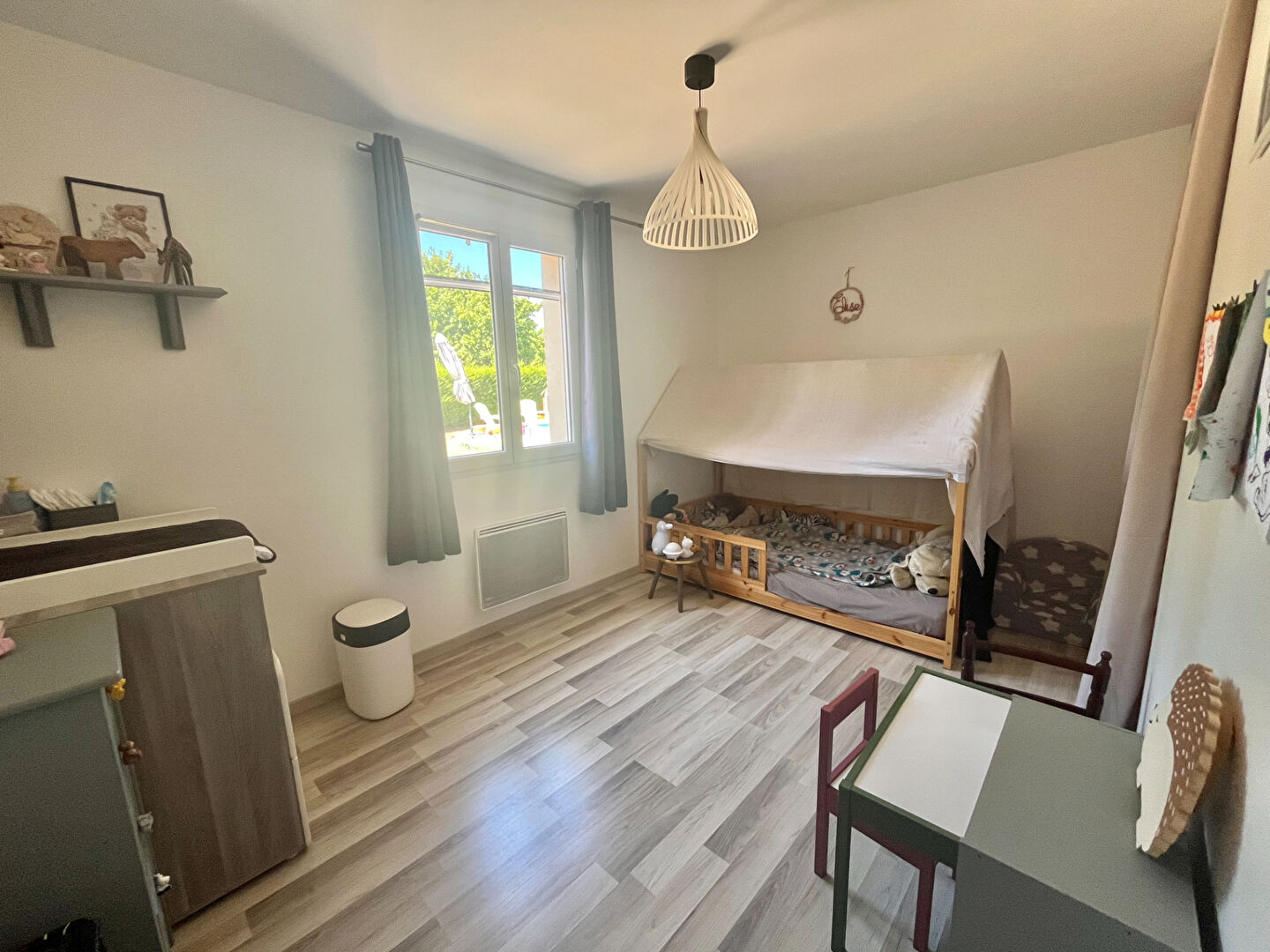 Un couloir dessert deux chambres confortables, une suite parentale avec dressing, un WC indépendant, une salle de bains, ainsi qu'un cellier pratique.
