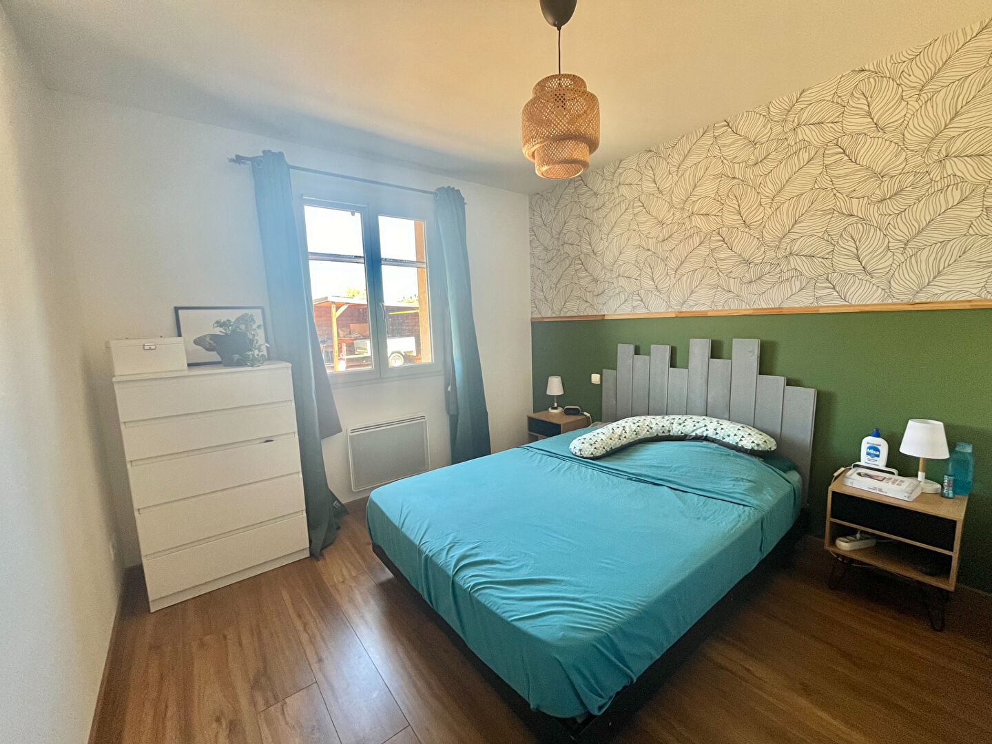 Elle se compose d'une entrée desservant une spacieuse pièce de vie lumineuse, intégrant une cuisine aménagée et équipée ouverte sur un salon chaleureux, donnant directement sur une véranda conviviale, idéale pour profiter de la lumière naturelle toute l'année.