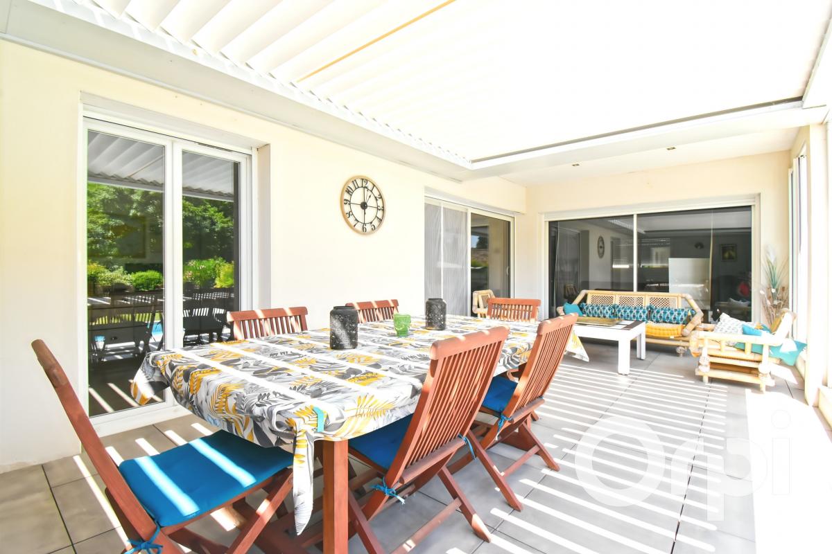 Côté extérieur, vous apprécierez un jardin arboré et paysagé sur une parcelle de 794 m² , facile d'entretien grâce à l'arrosage automatique alimenté par un puits, une grande terrasse de 30 m² avec pergola bioclimatique, pour profiter pleinement des beaux jours. Une piscine 5x5 m sécurisée par un rideau électrique, accompagnée d'une terrasse et d'une douche solaire.