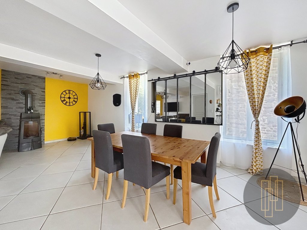 À l'étage, une spacieuse pièce de vie de 65 m² baignée de lumière. La cuisine équipée, moderne et fonctionnelle, s'ouvre sur un séjour convivial et un salon cosy agrémenté d'un poêle à bois.