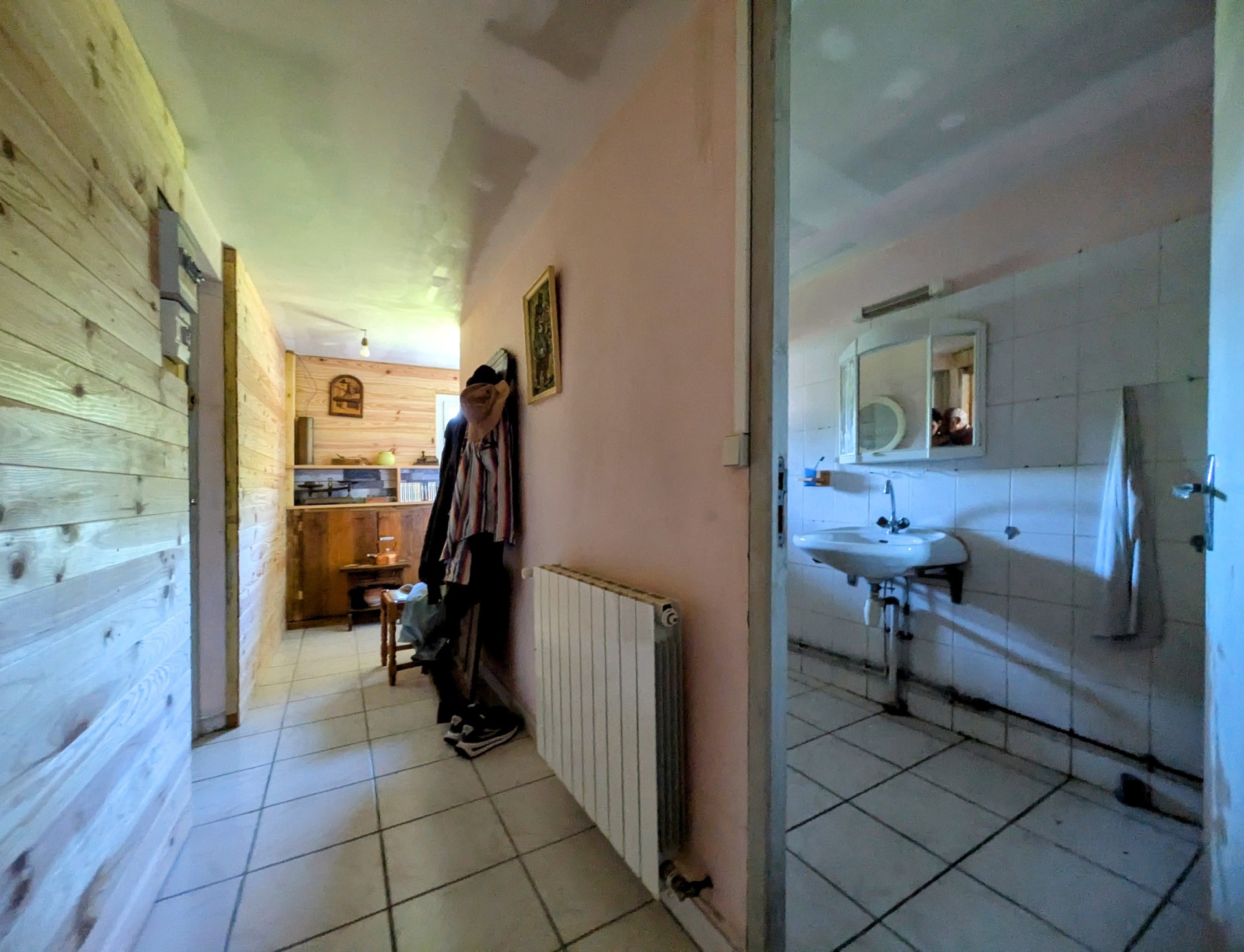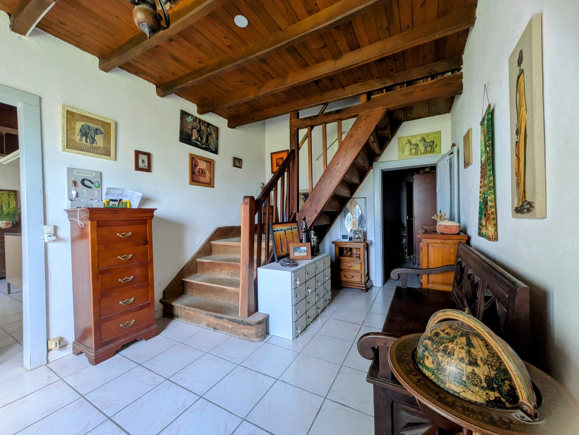 La maison principale dispose d'une vaste entrée desservant le salon et la cuisine, une buanderie, une salle de bain et la chaufferie. Un bel escalier dessert 3 chambres.