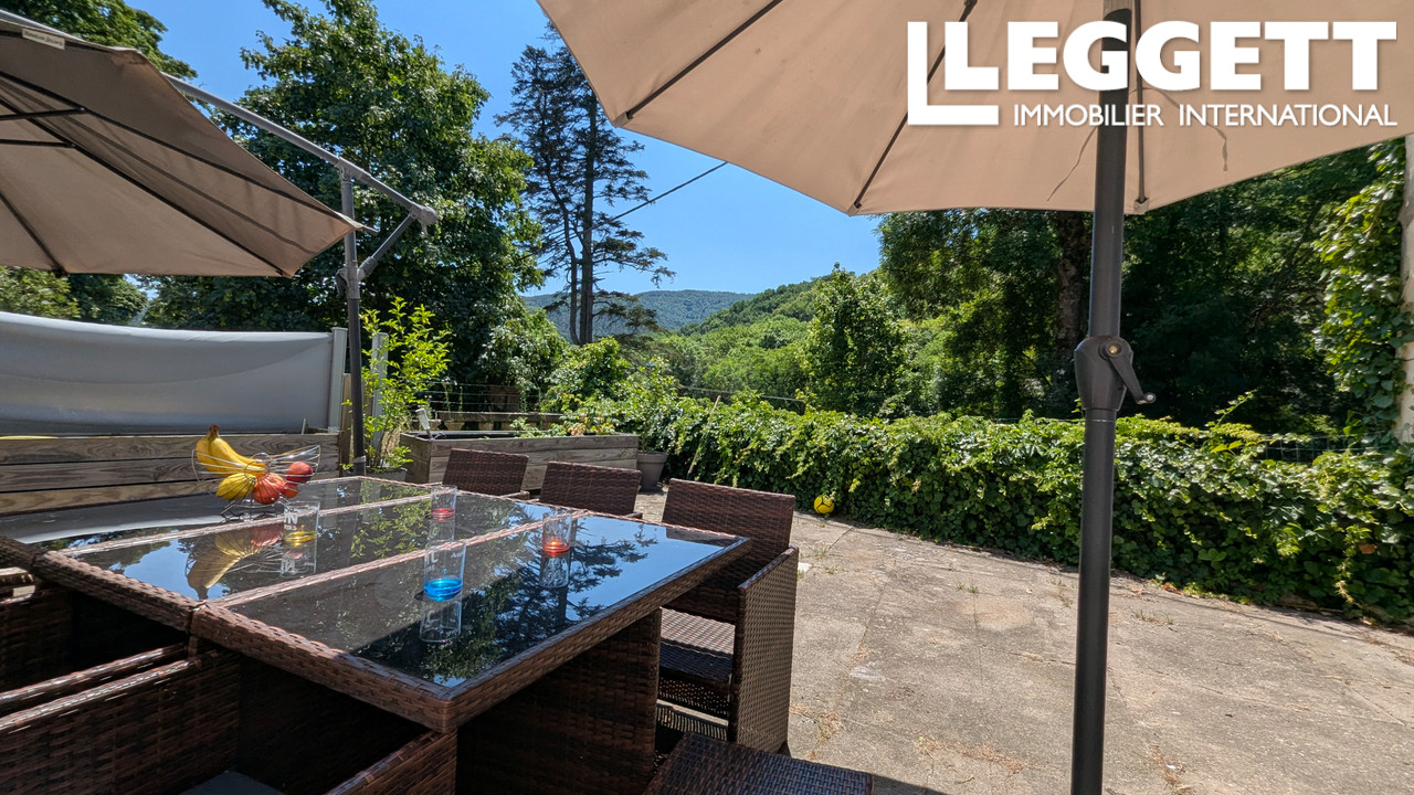 A34427SOM34 - Une ancienne résidence épiscopale qui a besoin d'être soignée pour révéler son potentiel. Située en bordure d'un petit village avec école et restaurant, elle dispose d'un vaste terrain au bord d'un ruisseau. Parfaite comme maison familiale dans laquelle on peut vivre confortablement tout en travaillant à l'amélioration d'autres parties de la propriété.