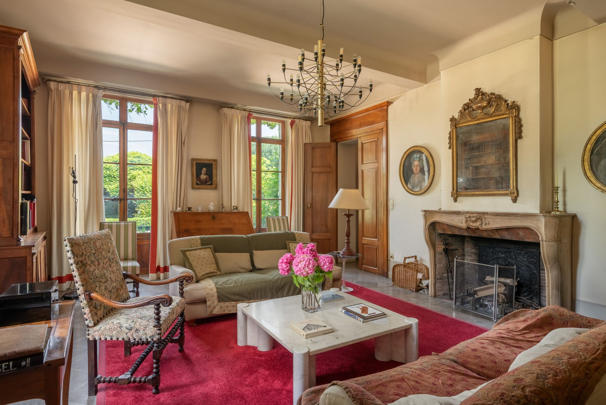 A l'extérieur, le parc paysagé invite à la rêverie entre arbres centenaires, allées ombragées et coin détente près de la source naturelle; la propriété respire la quiétude et le raffinement.