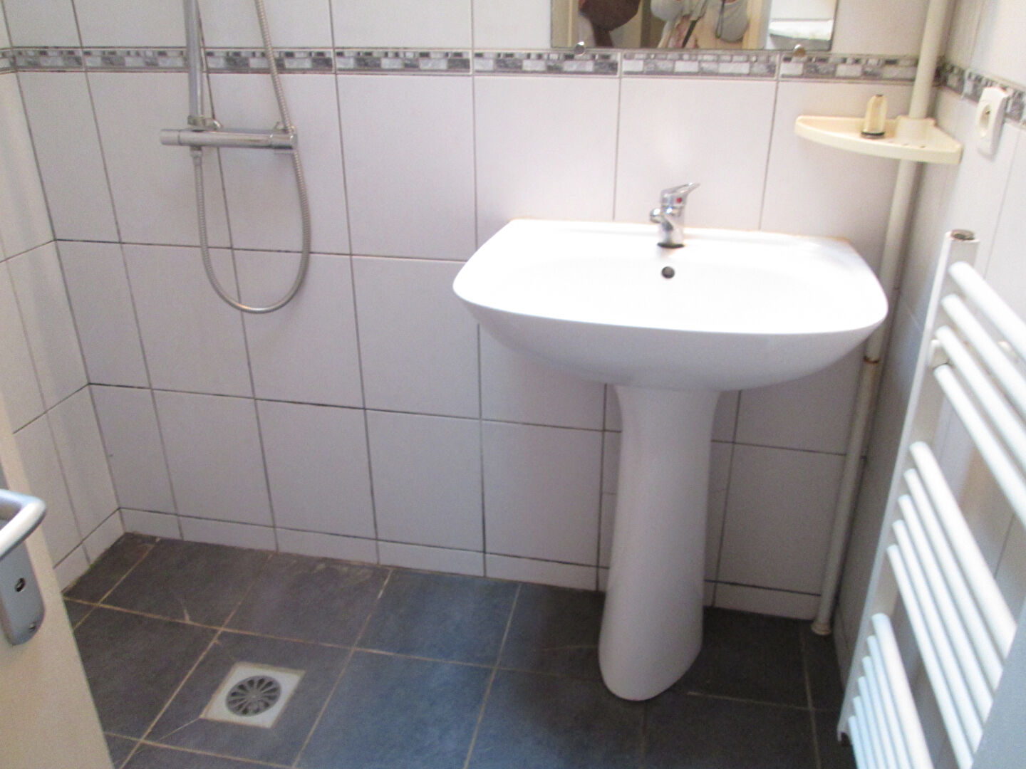 Entrée, séjour avec cuisine aménagée et en partie équipée, salle d'eau avec wc