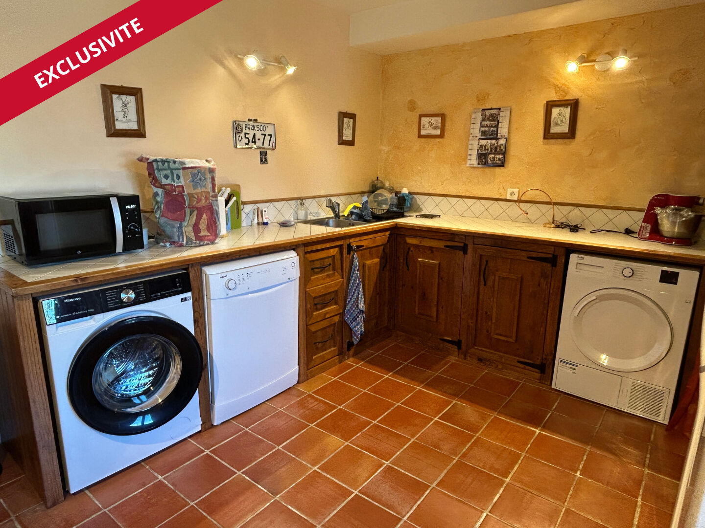 Elle se compose au rez-de-chaussée d'une cuisine avec arrière cuisine, salle à manger, salon, bureau et WC.