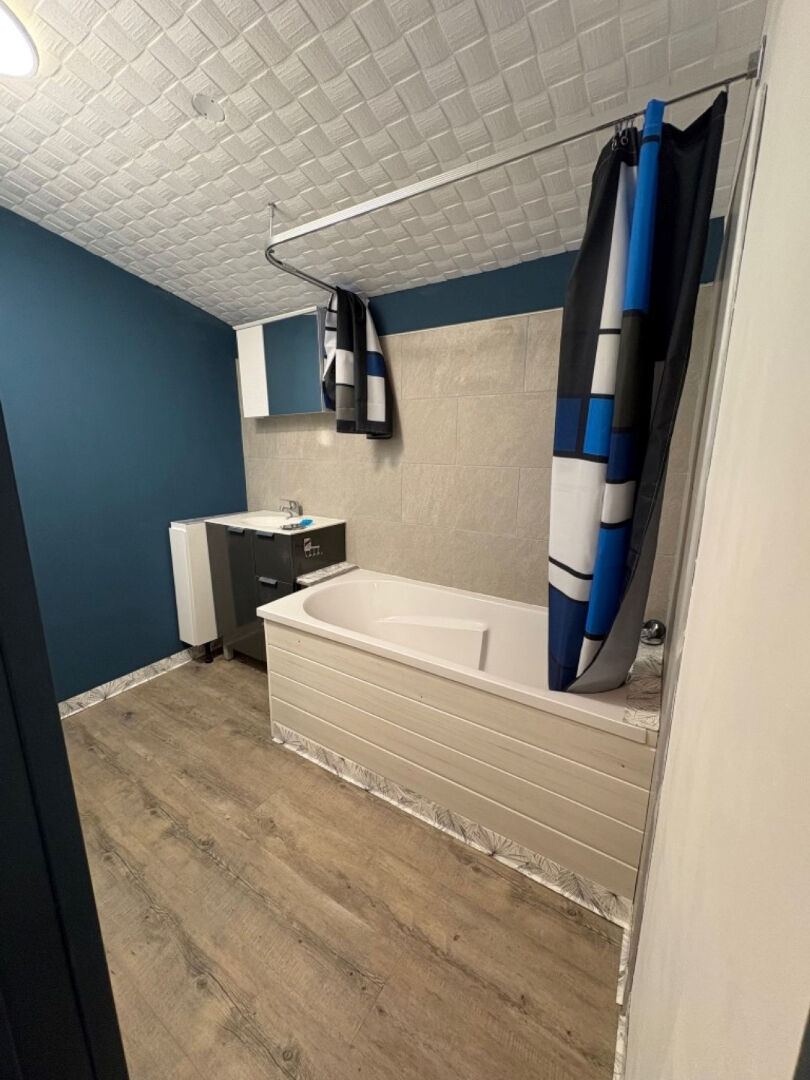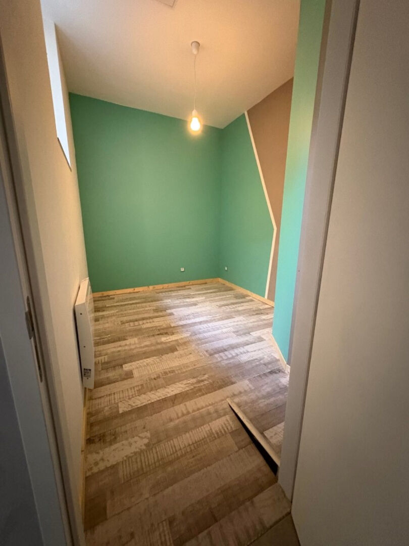 A l'étage ,2 chambres en enfilade, salle de bains.