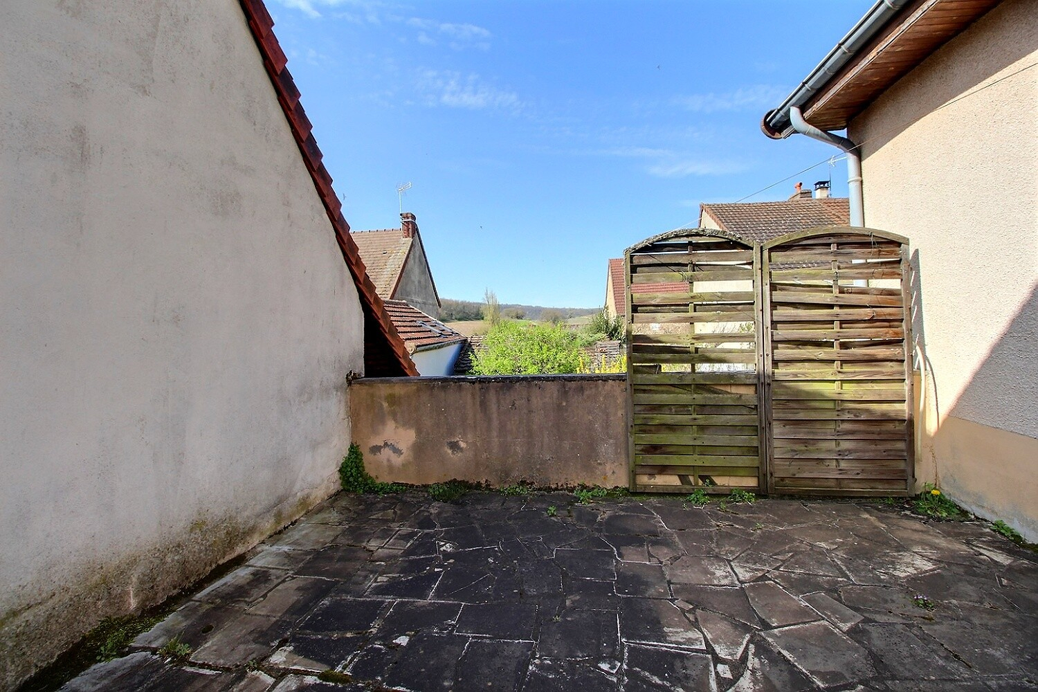 Centre village, maison mitoyenne de 88 m² élevée sur caves offrant: Entrée sur dégagement, cuisine, séjour avec accès terrasse, salle d'eau avec toilette, 1 chambre. A l'étage, 2 chambres en enfilade, rangement sous comble.