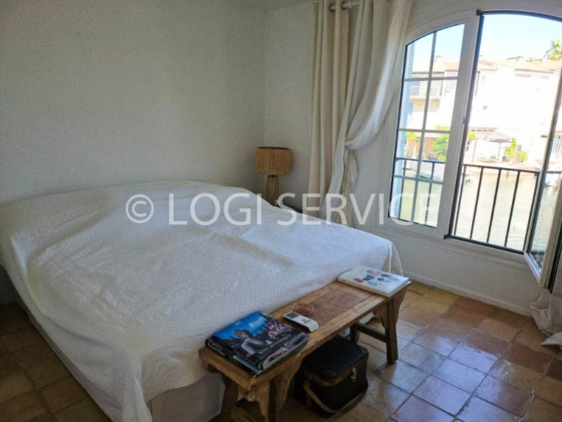 Une double exposition avec une terrasse côté canal avec son amarrage de 10.7 mètres et une cour côté rue . En rdc, une entrée avec cuisine contemporaine, un séjour avec cheminée.