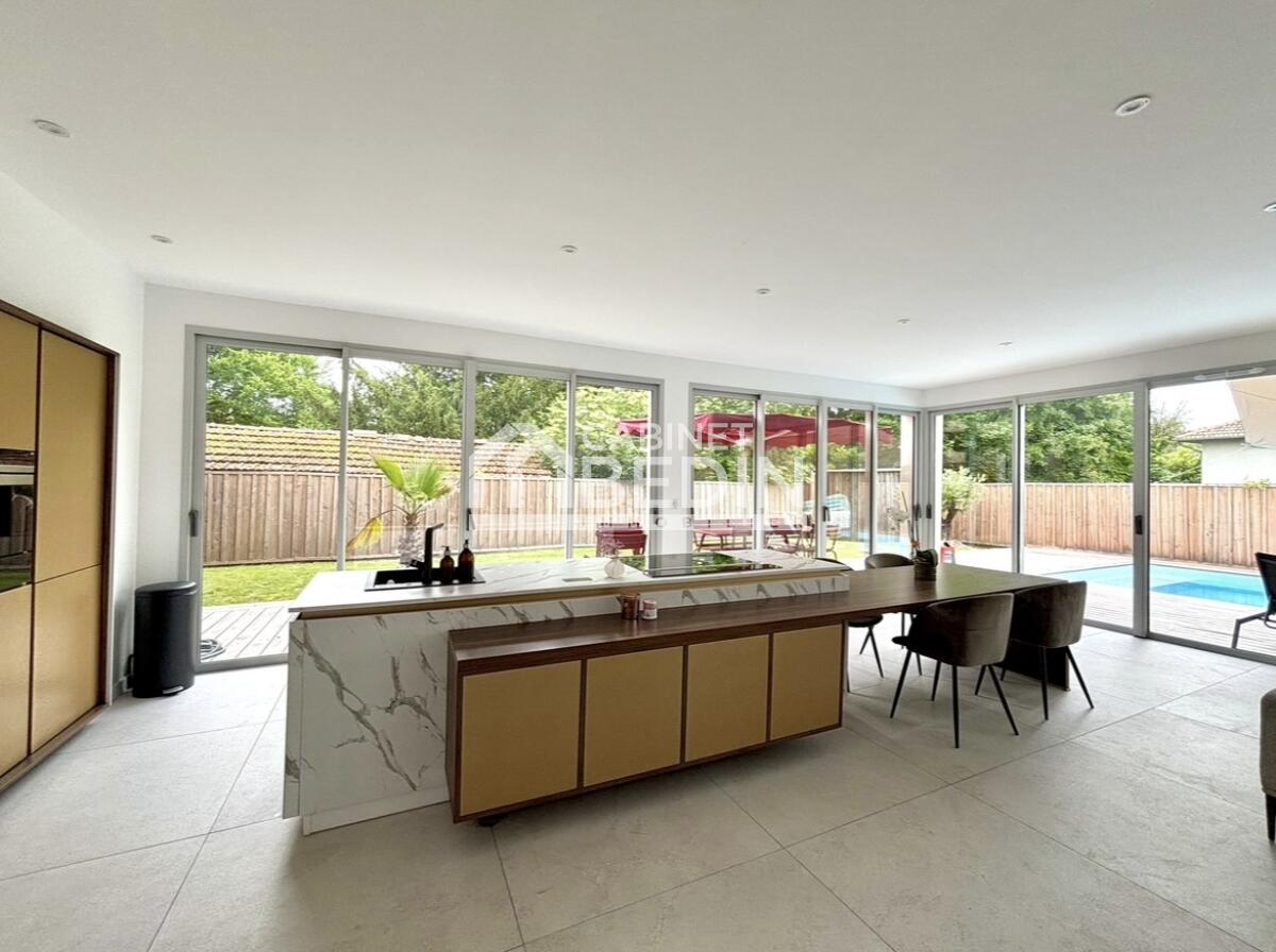 GRADIGNAN HYPER CENTRE. EXTRÊMEMENT rare maison contemporaine au grand calme en HYPER CENTRE. Vous serez séduits par sa pièce de vie de 60m2 et ses baies vitrées offrant de la lumière à chaque moment de la journée, une belle hauteur de plafond accentue le volume, une chambre parentale et 3 grandes chambres accueilleront votre famille. Fonctionnelle, emplacement idéal et calme, une piscine vient parfaire toutes ses qualités pour vous offrir le meilleur et un bien-vivre assuré. . Les informations sur les risques auxquels ce bien est exposé sont disponibles sur le site Géorisques : www. georisques. gouv. fr. Montant estimé des dépenses annuelles d?énergie pour un usage standard : entre 380 et 560 Euros/an (année de référence 2022)
