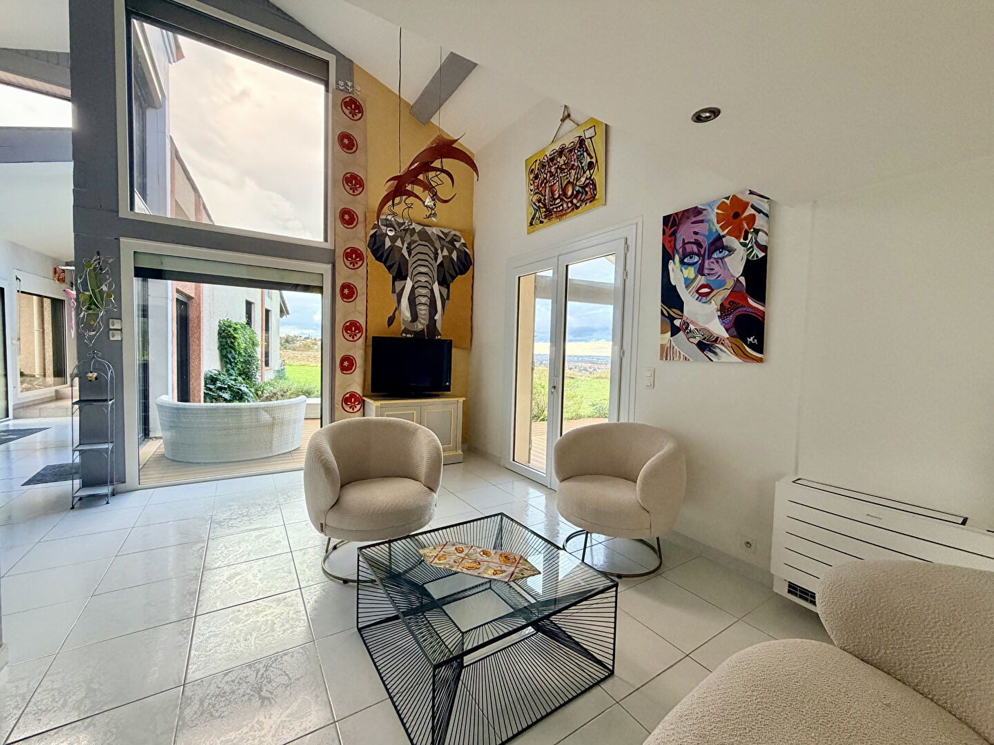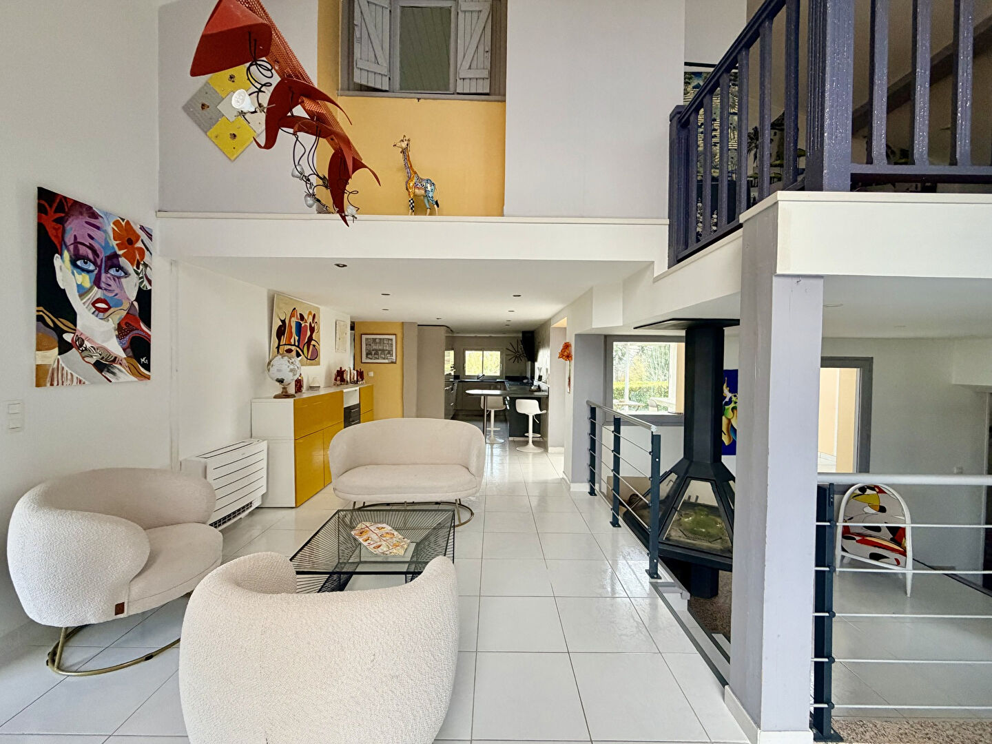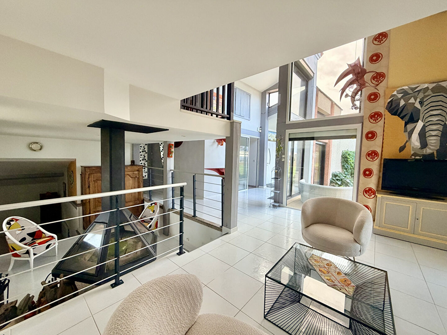 Très lumineuse, elle offre de nombreux espaces cosy répartis dans la maison : piscine intérieure et sauna, salle TV, coin lecture, salons, dégagements, mezzanine, bureau ainsi que de 6 chambres, 2 salles d'eau et une salle de bain.