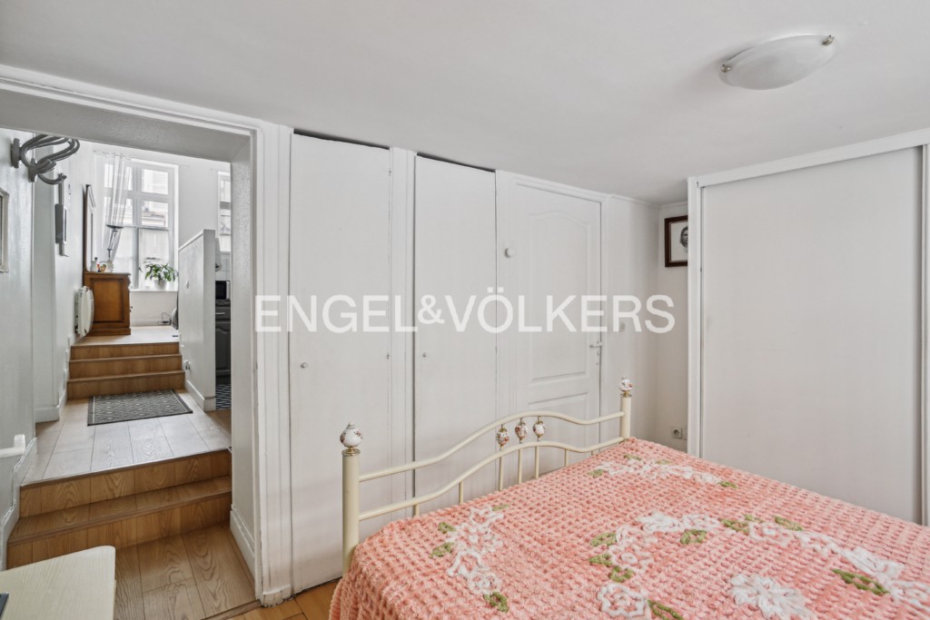 Idéale pour vivre ou investir à Paris. Sa distribution atypique style maison de ville distribue au rez-de-chaussée une chambre parentale et la salle d'eau. Au niveau supérieur un séjour au plafond cathédral de 4.80m de hauteur avec une cuisine ouverte. Au dernier niveau, une deuxième chambre avec son WC attenant.