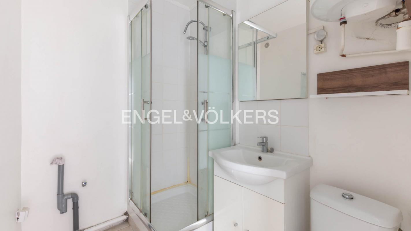 Engel&Völkers vous propose un appartement de 35m² au 5e étage d'un immeuble bien sécurisé: une entrée avec placard dessert un séjour avec cuisine ouverte d'un côté, et une chambre spacieuse de l'autre.