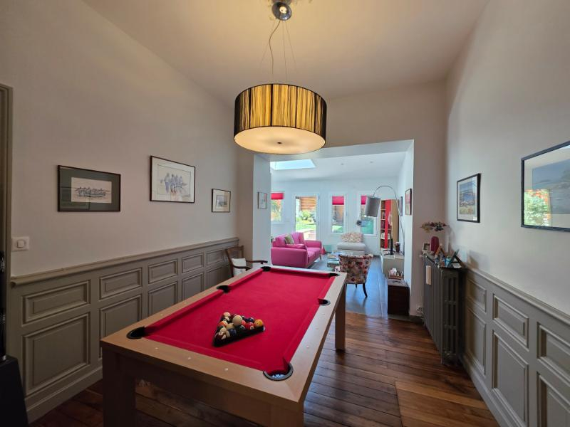 Au rez-de-chaussée, vous découvrirez une belle entrée, un wc, puis une vaste pièce de vie en L regroupant la salle à manger, le salon télé, la salle de billard ainsi qu'un petit salon cosy avec cheminée, formant un espace convivial et lumineux. La cuisine, entièrement aménagée et équipée complète ce niveau avec praticité.