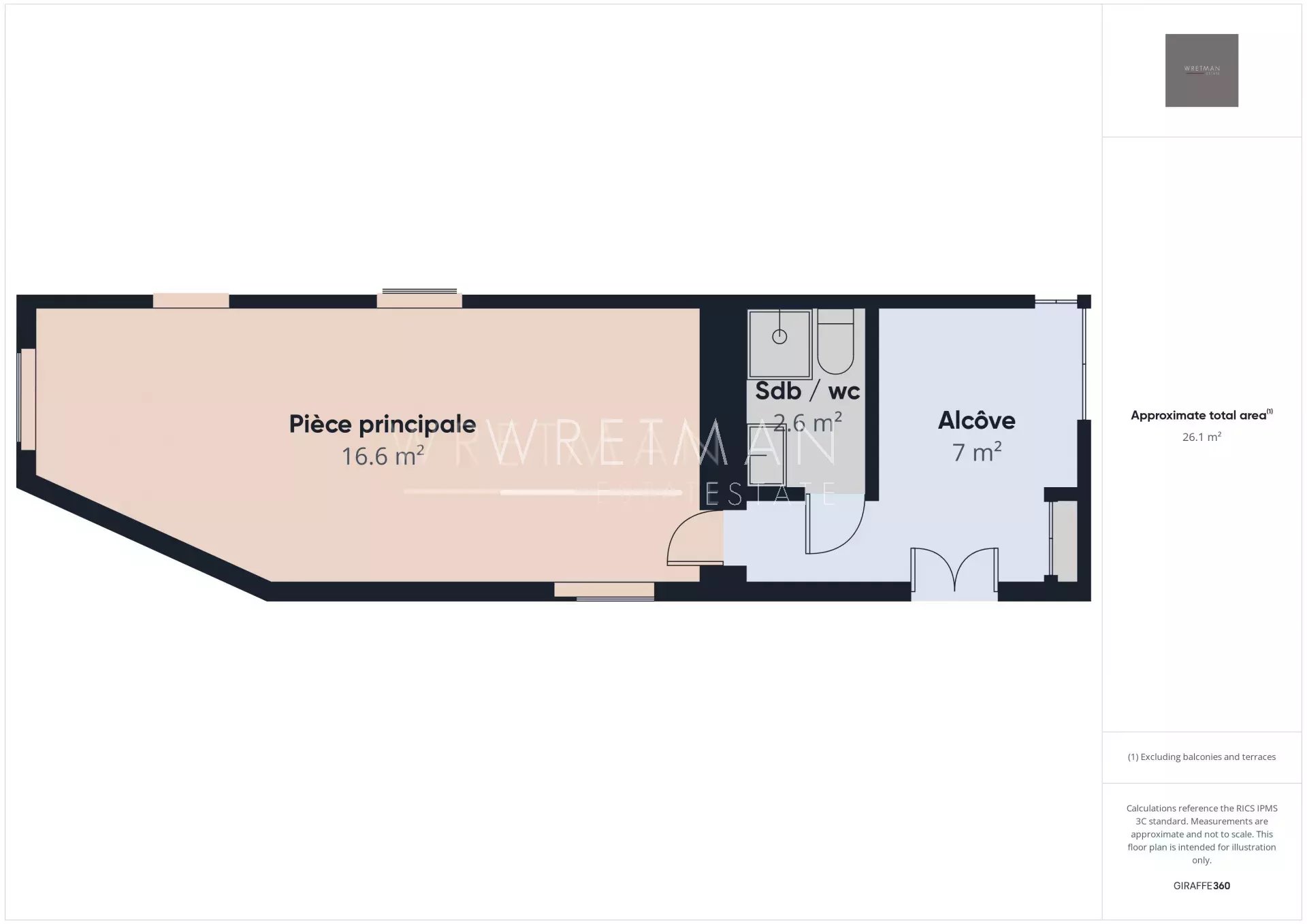 L'appartement se compose d'un séjour en triple exposition avec kitchenette, une salle d'eau avec wc et d'une alcôve avec balcon.