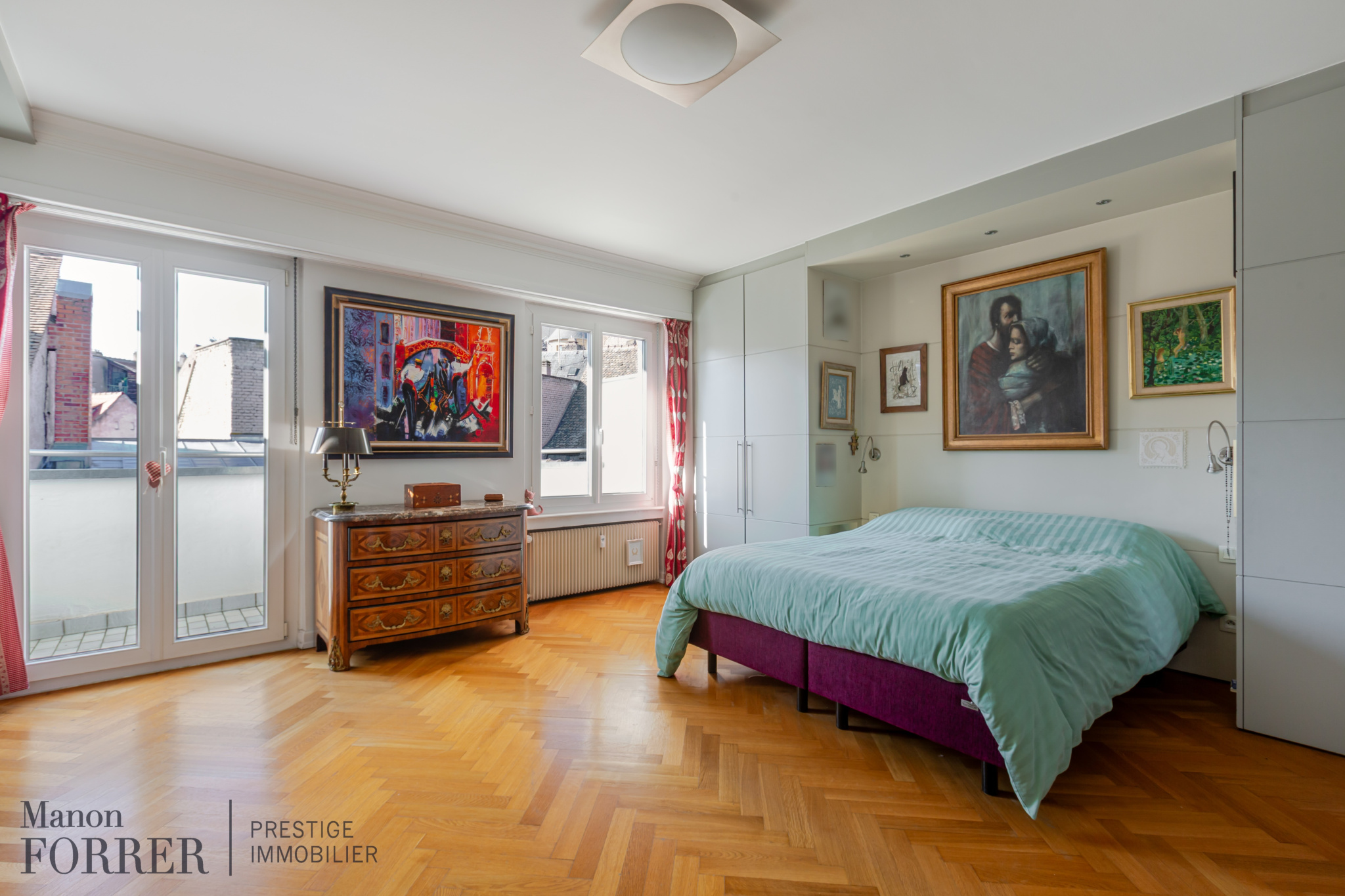 Agréable appartement 6/7 pièces idéalement situé non loin du quai des Bateliers à Strasbourg d'environ 180m2 habitables et 194m2 au sol avec terrasse de 17,5m2 et balcons.