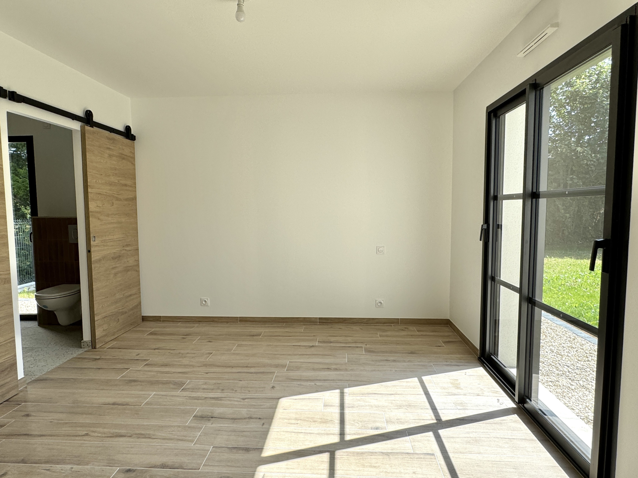 La suite parentale de 28m2, située au rez-de-chaussée, dispose d'un dressing à aménager et d'une salle d'eau privative avec douche à l'italienne.