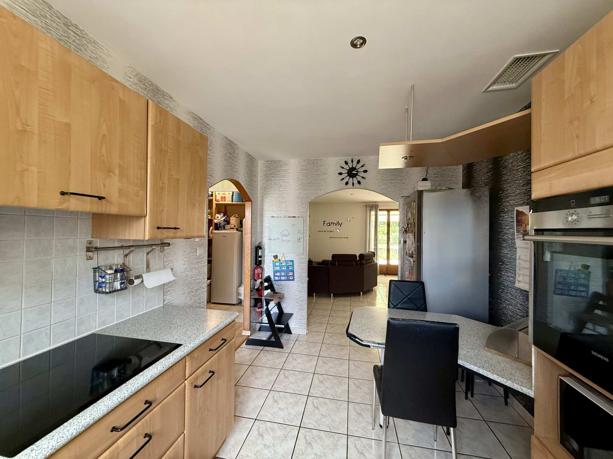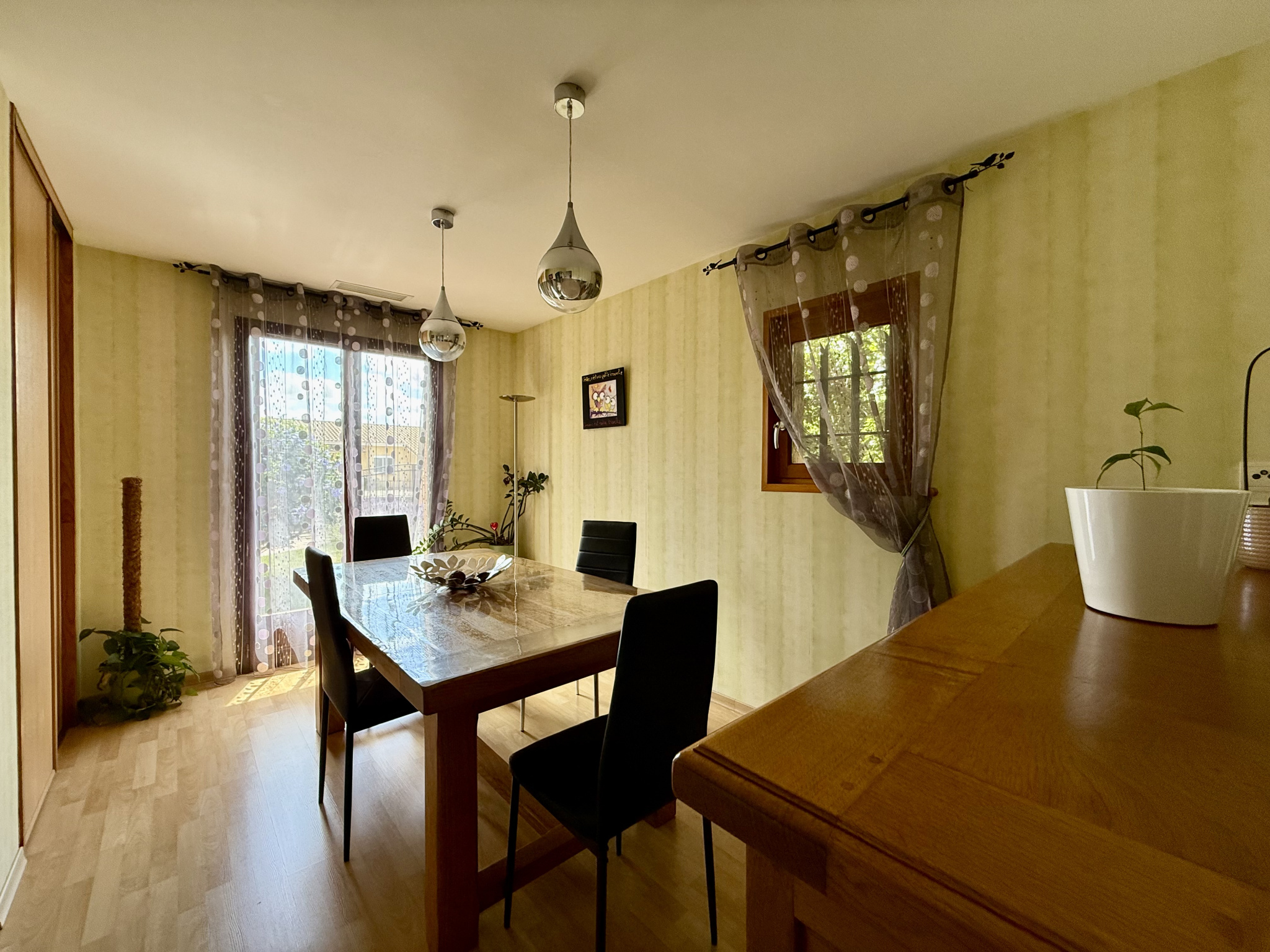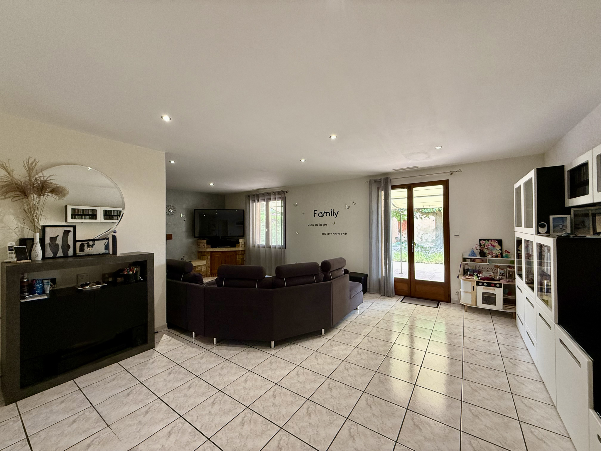 D'une superficie habitable de 150 m2, elle s'élève sur un terrain joliment paysagé de 1 100 m2, sans vis-à-vis et parfaitement entretenu. L'intérieur se compose d'une cuisine semi-ouverte sur une salle à manger, prolongée par un salon lumineux donnant directement sur une grande terrasse, idéale pour profiter pleinement des extérieurs en toute saison.