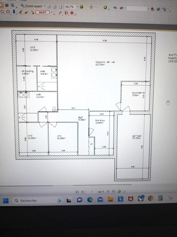Elle comprend 4 chambres , salle d' eau, bureau , pièce à vivre de 63 m2 ( voir plan )....