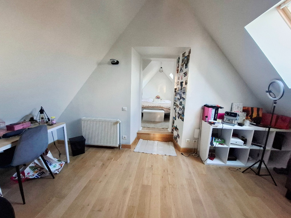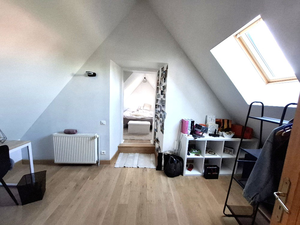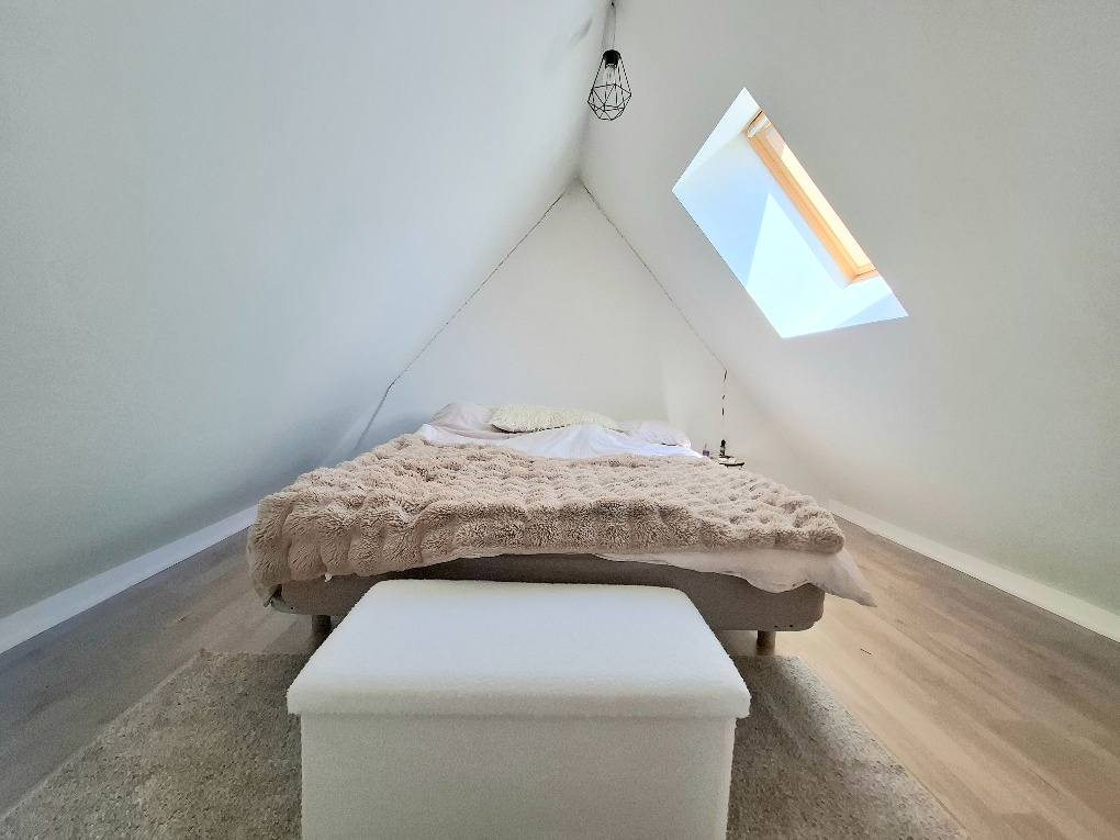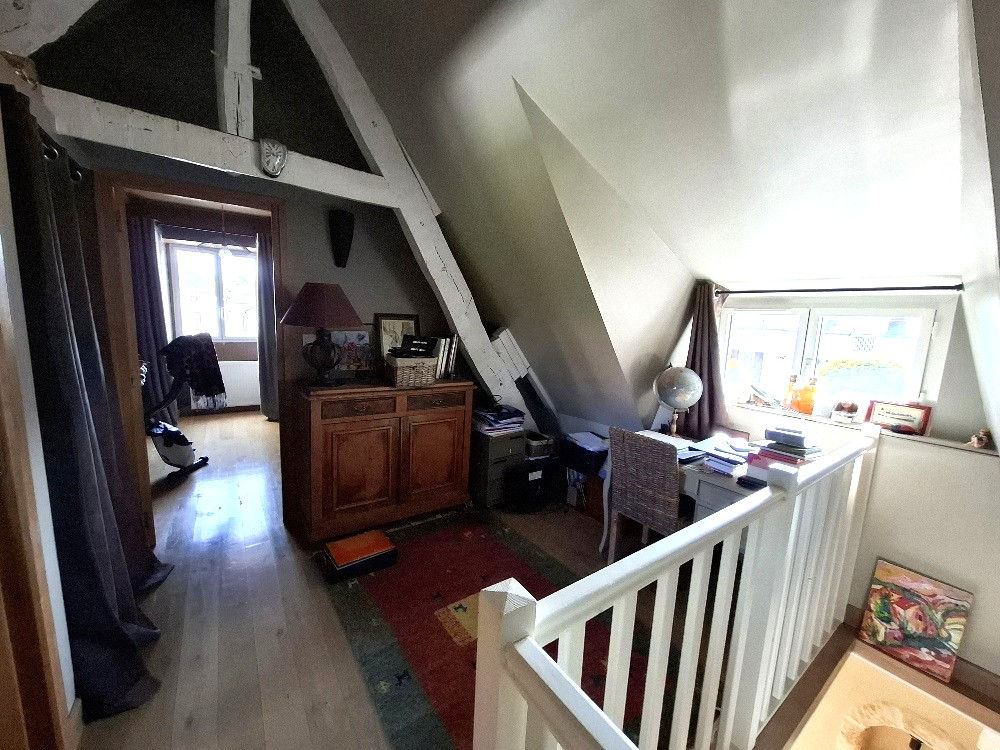 -A l'étage, une mezzanine desservant une salle d'eau avec WC, une chambre et une autre chambre avec espace nuit et espace bureau.