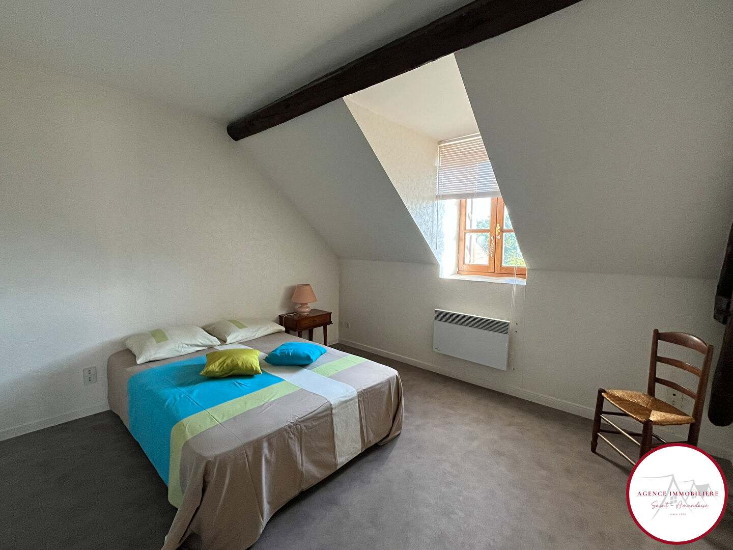 À l'étage, vous trouverez trois chambres, un bureau, une salle de bains, un WC, ainsi qu'une porte donnant accès à un escalier en pierre extérieur qui descend sur le côté de la maison.