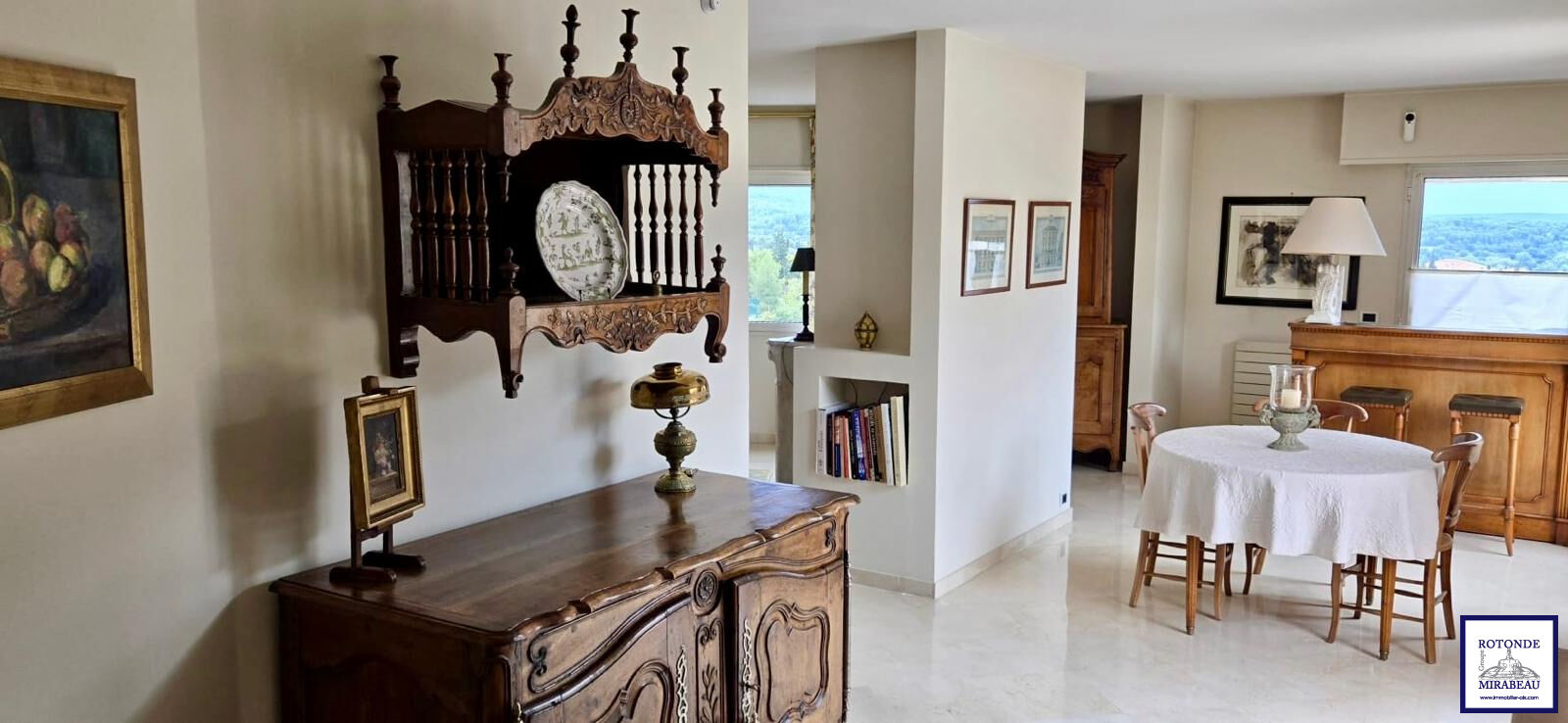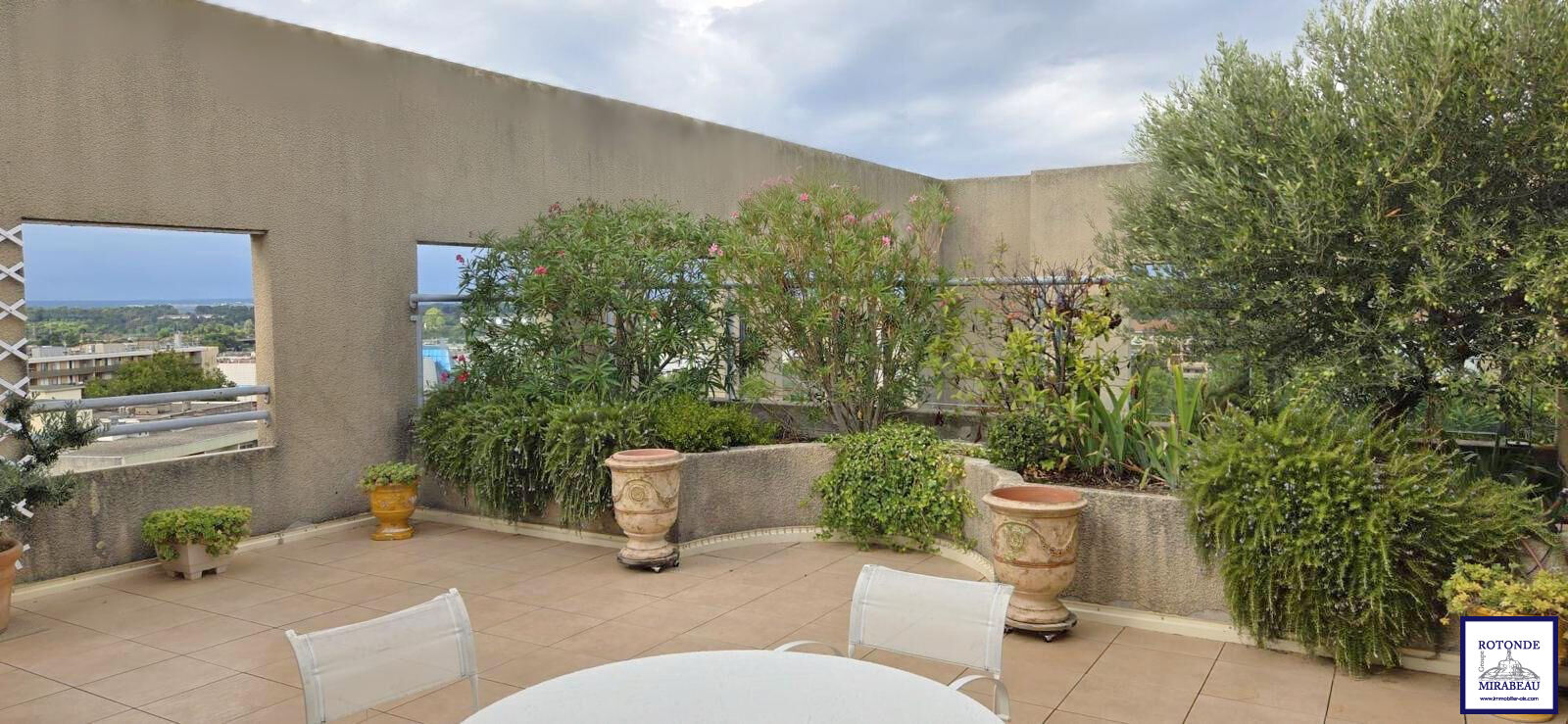 A vendre en exclusivité au centre-ville d'Aix-en-Provence - Au calme, dans une résidence fermée avec ascenseur, appartement d'exception en dernier étage d'environ 158m2 climatisé, ouvrant sur une terrasse plein ciel de 40m2. L'appartement se compose d'un vaste séjour bénéficiant d'une double exposition sud et ouest, belle vue dominante sur la chaine de l'étoile, grande cuisine équipée ouvrant sur un balcon, buanderie-lingerie, 3 chambres dont une grande suite parentale,1 Salle de bain avec toilette indépendant, 1 salle de douche, 1 toilette invités. L'appartement est également équipé d'une grande cave et de 3 parkings au sous-sol de l'immeuble. DPE CLASSE ENERGIE : D - CLASSE CLIMAT : D. M 78329 - AGENCE ROTONDE MIRABEAU, Agence Immobilière 4 Cours Mirabeau, 13100 - AIX EN PROVENCE. Tel : 04 42 91 27 00