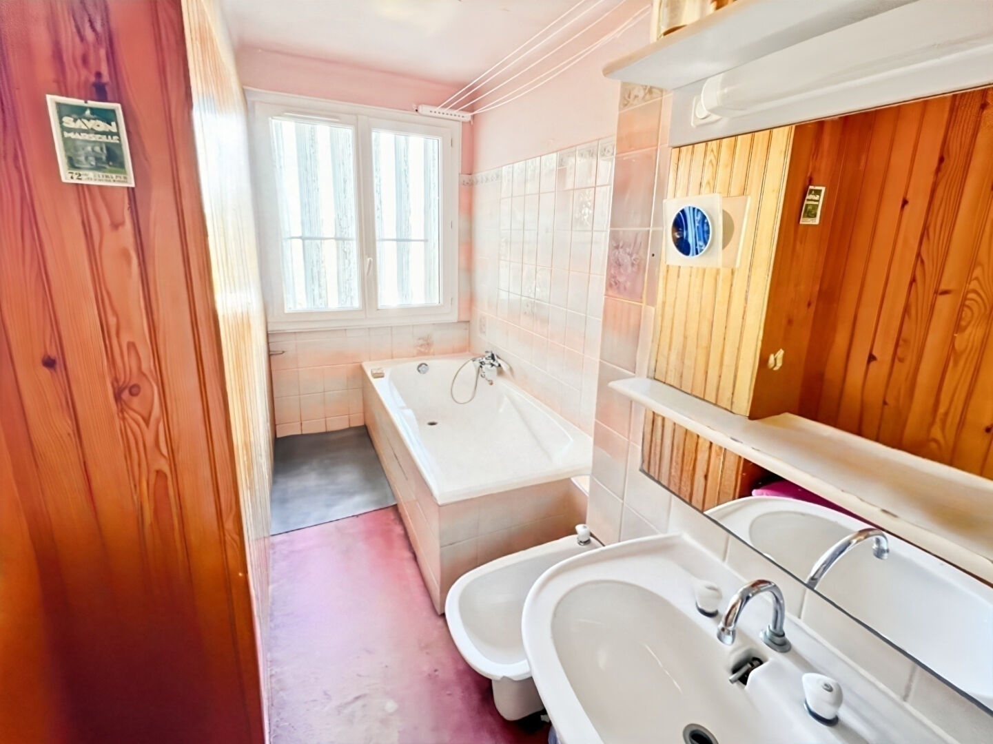 L'appartement comporte également une cuisine indépendante, deux chambres avec placard, une salle de bain à rafraîchir et des WC séparés.