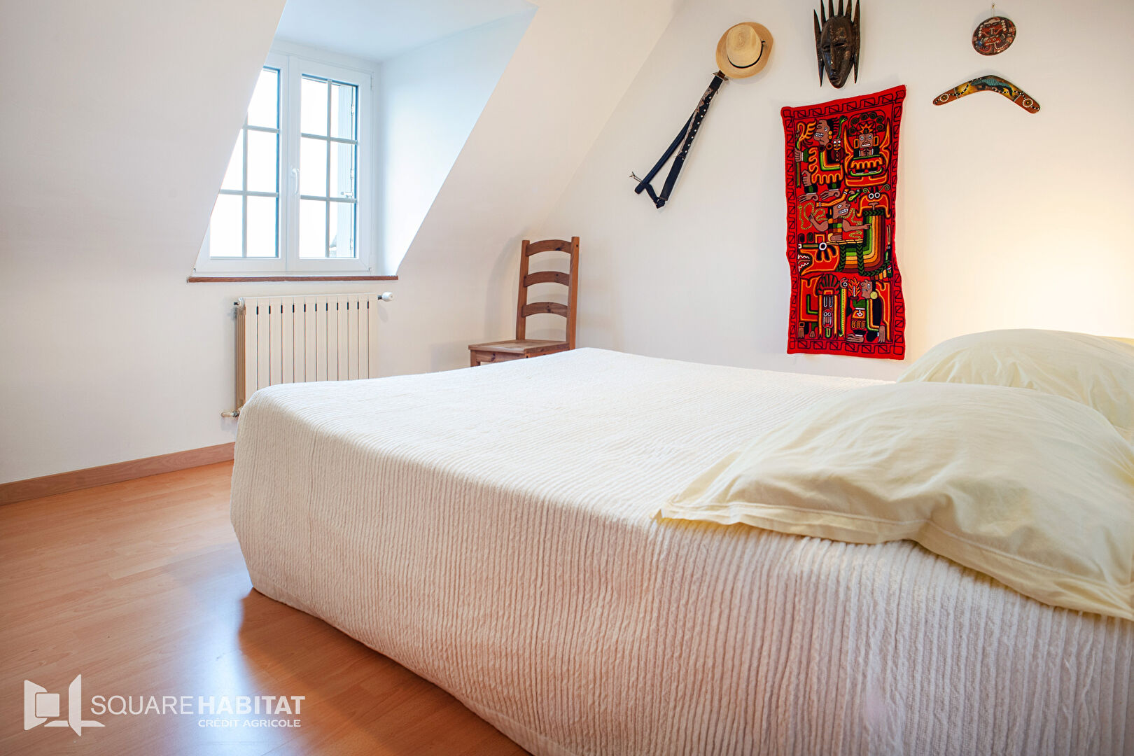 A l'étage, le couloir dessert trois belles chambres, deux espaces bureaux, une salle de douche avec wc.